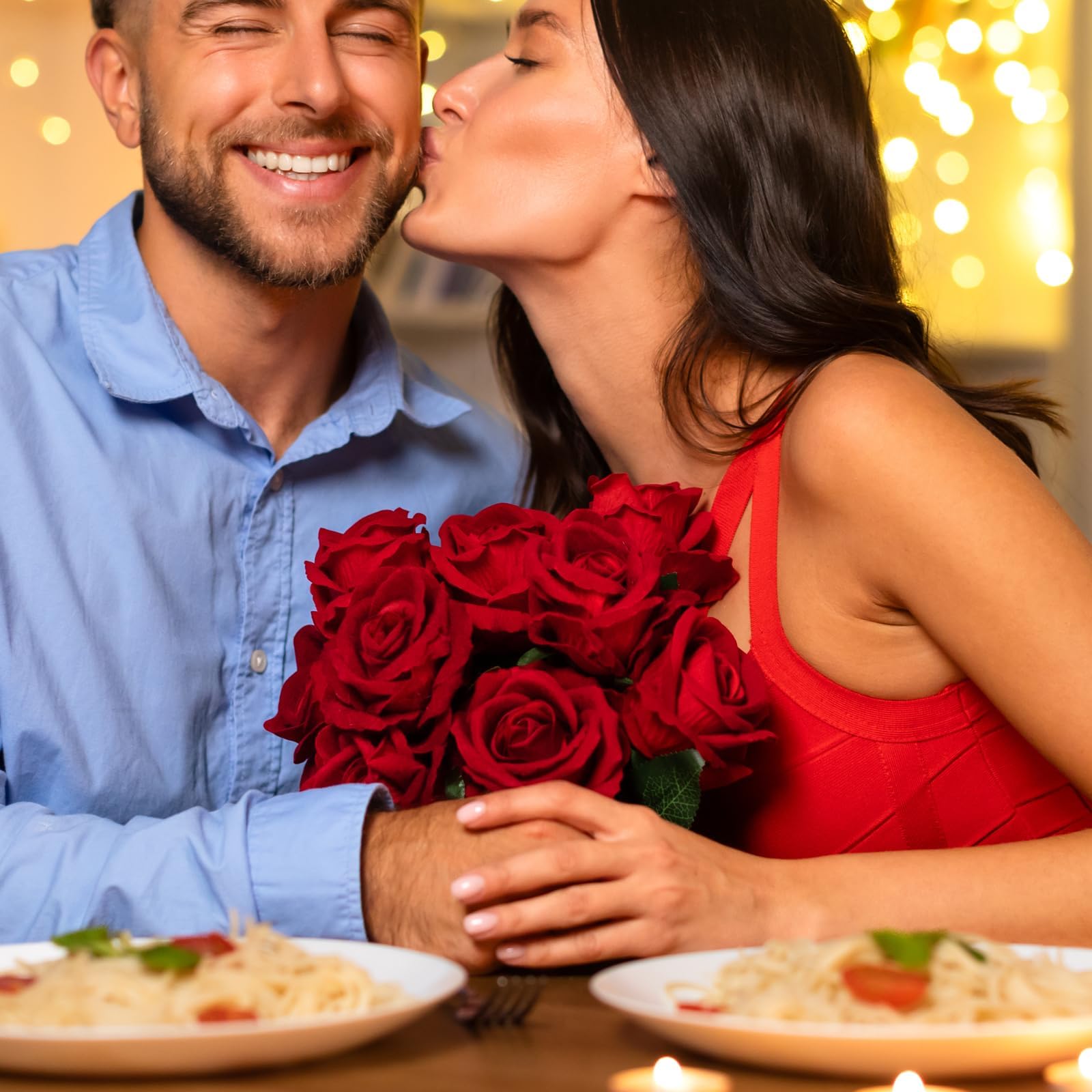 Rose Artificiali a stelo lungo Fatte a Mano: Questi mazzi di rose hanno fiori ricchi e soffici, che li rendono più realistici e vivaci. Lo stelo della rosa ha una superficie in plastica e un filo all'interno, può essere piegato o tagliato a qualsiasi lunghezza per adattarsi a diversi vasi. È inoltre possibile scegliere tra un'ampia gamma di colori e stili, fiori artificiali per decorazioni per soddisfare le diverse esigenze estetiche e di stile decorativo.