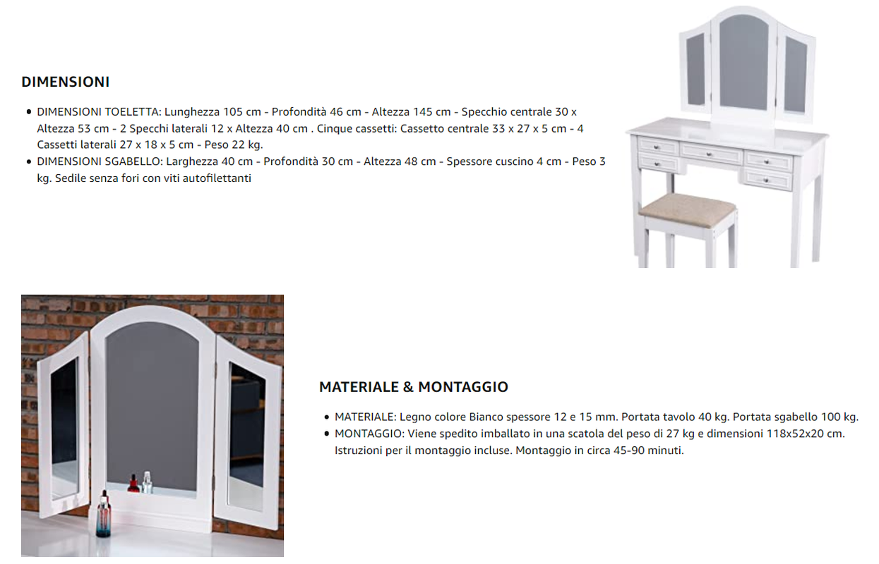 | Tipo | Tavolo da trucco |