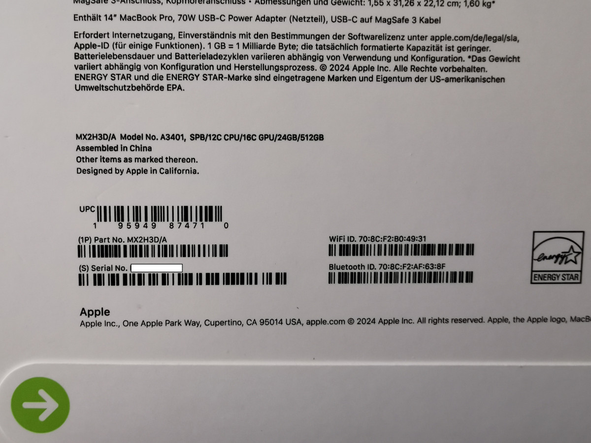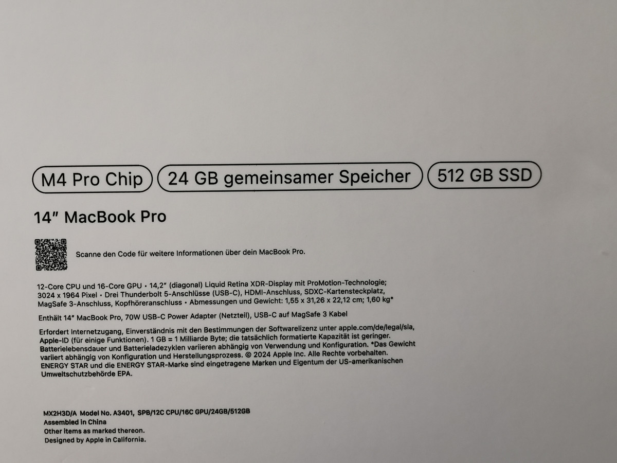 14" Liquid Retina XDR-Display, 24GB RAM, 512GB SSD,