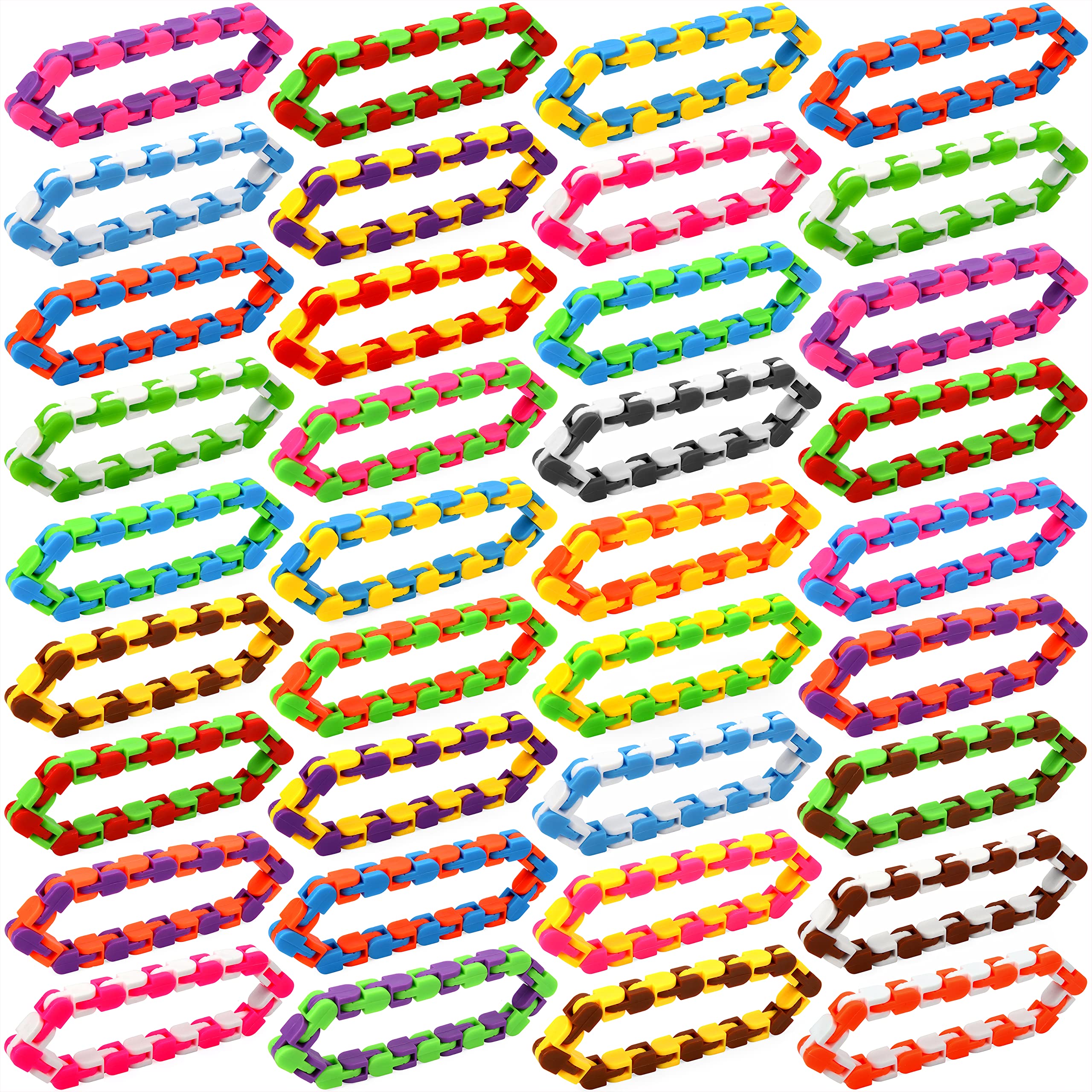 - The package includes 46 wacky tracks with 23 different color styles,2 pieces per style.Each track has 24 links which can pivots and locks into 5 positions, so you can build and shape the chain in lots of different ways.