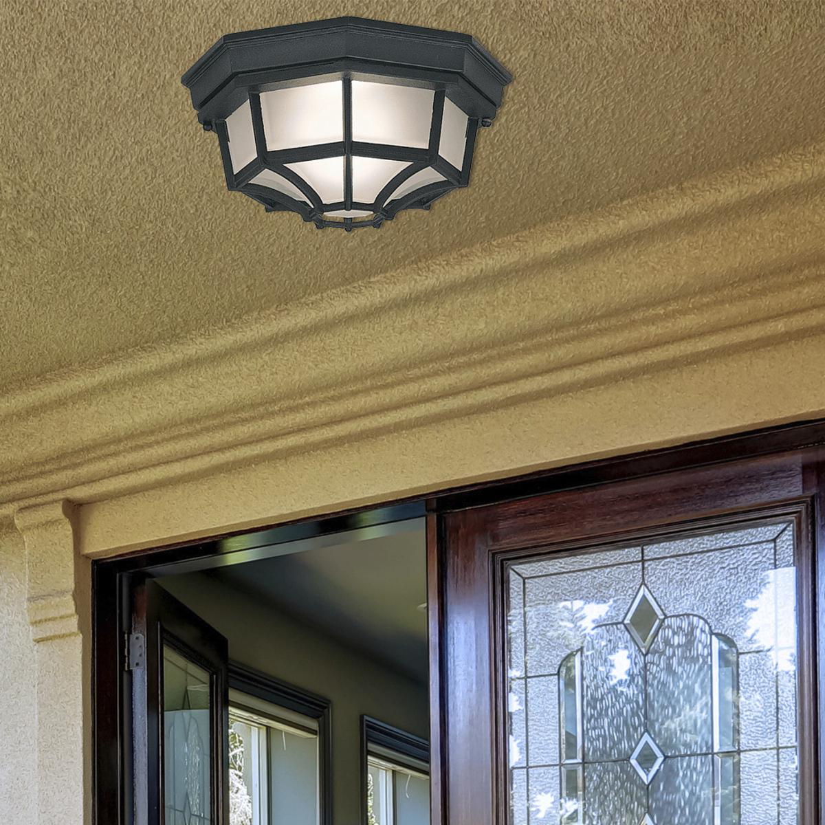 The Builder Cast Aluminum Collection comes in Black with Frosted glass. This Designers Value Builder Cast Aluminum 10 in. Flush mount will complement the decor in any room of your home. Made with Cast Aluminum construction to endure harsh outdoor environments.