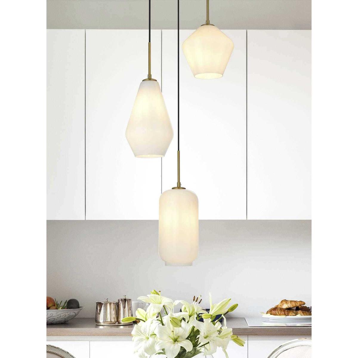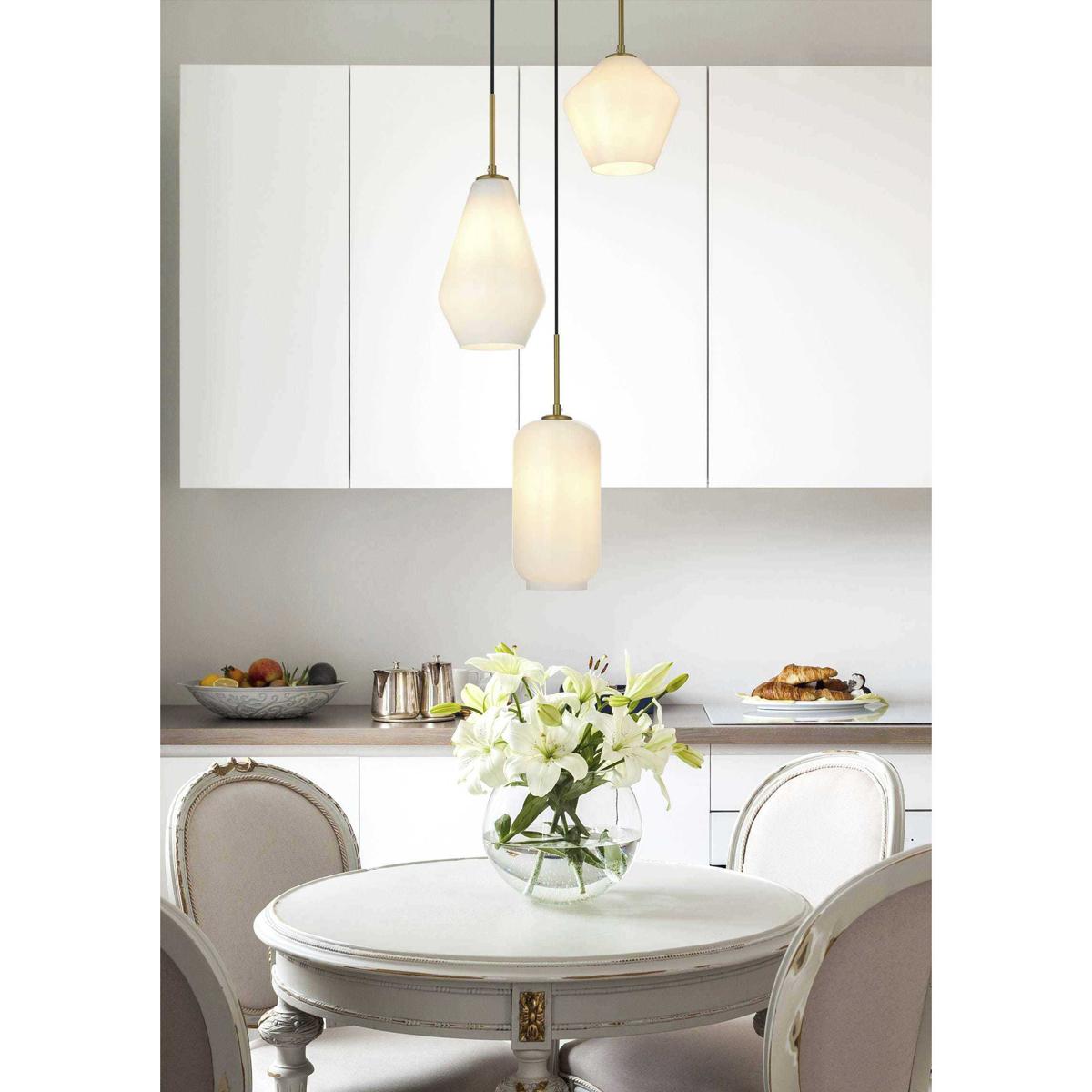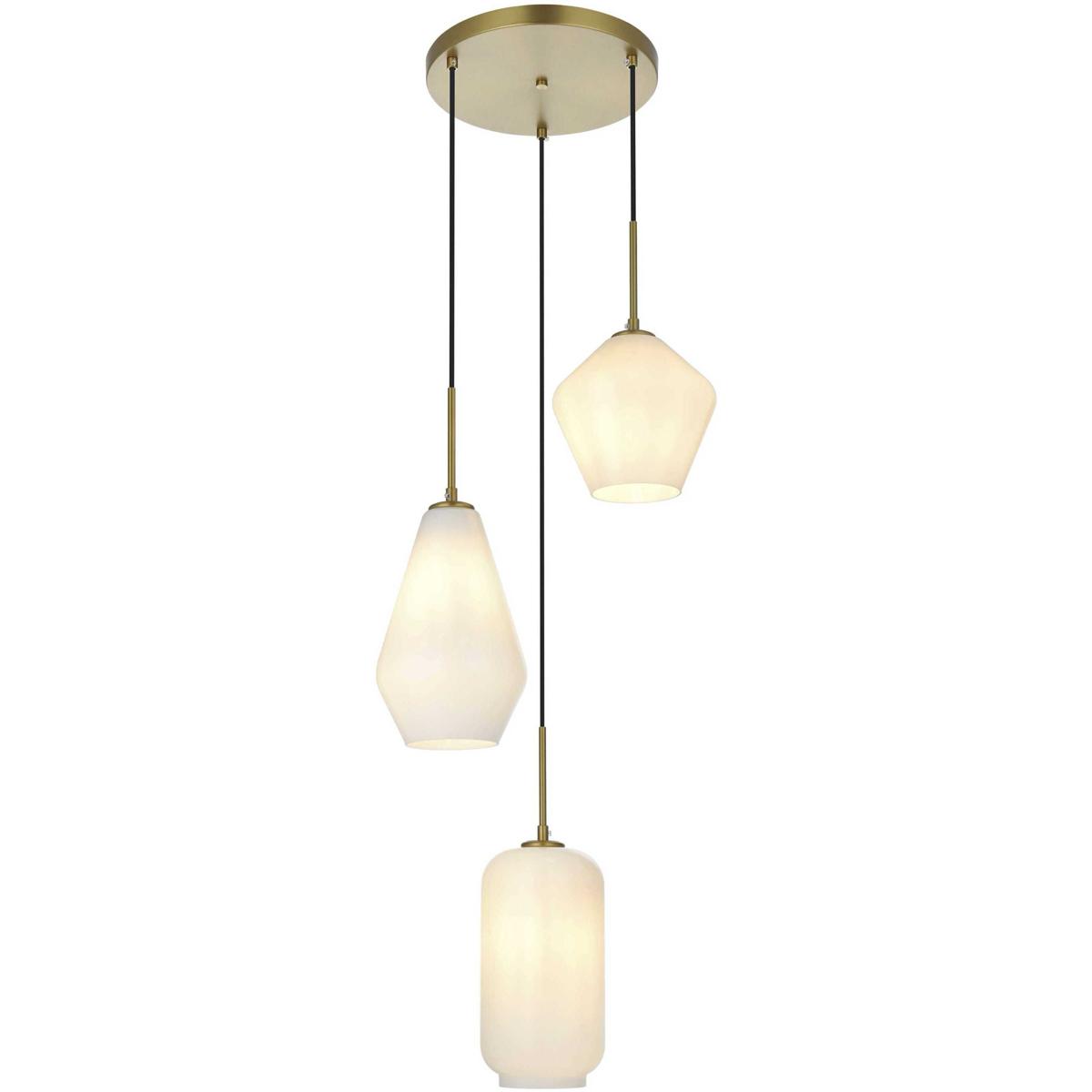 The Gene Collection of lights will be sure to have your guests admire your modern sense of style with the beautiful simplicity of its shape and form. The canopy supports three pendant lights that can be adjusted to different heights in order to create dramatic levels of lights and shadows. The pendant's clean lines created by the cords and diamond shaped shades makes this the perfect lighting addition to any home that is in need of a chic modern flair. Available in a satin gold, brass, chrome, or black finish, with either a clear or frosted diamond glass shade, enhance your dining room, living room, or bedroom with the Gene Collection hanging pendant and live in sleek contemporary style (light bulbs not included).