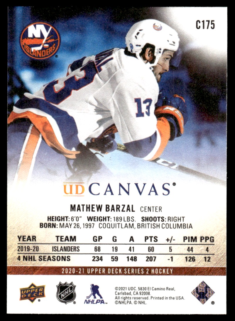2020-21 Upper Deck UD Canvas Mathew Barzal New York Islanders #C175