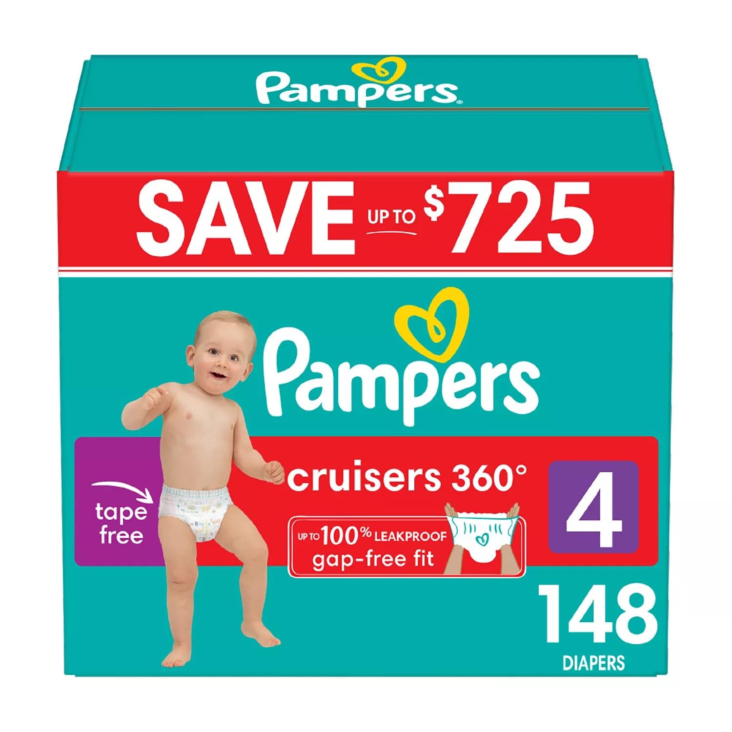 New and improved Pampers Cruisers 360! Pampers Cruisers 360 diapers are our best fit and protection for your active baby. Unlike ordinary disposable diapers that gap in the back, Pampers Cruisers 360 diapers stretch comfortably around your baby's waist and adapt to their every move for a flexible, gap-free fit. Pampers Cruisers 360 diapers now feature our innovative Blowout Barrier for up to a 100% leakproof fit. For added protection, Dual Leak-Guard Barriers gently seal around your baby's legs, where leaks happen most. And forget fiddling with ordinary diaper tapes! Pampers Cruisers 360 has a 360 Stretchy Waistband designed to quickly and easily pull up on your wiggly baby. And when your little one is ready for a change, weve made disposal simple. All you need to do is RIP the Easy-Tear Sides and ROLL the diaper, then secure it with the disposal tape that comes attached to the back. Simple as that! Also, to keep your baby's delicate skin healthy, Pampers Cruisers 360 delivers breathable dryness, pulling out wetness and locking it away from skin using our exclusive LockAway Channels. For protection that will keep your little one happy and comfy on the go, try Cruisers 360!