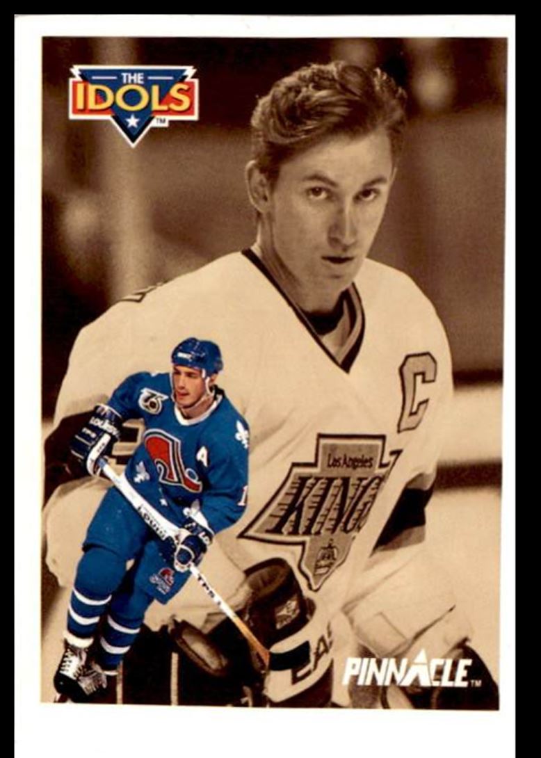 | Description: | Joe Sakic/Wayne Gretzky | | Category: | Hockey | | Year: | 1991 | | Product: | Pinnacle | | Team: | Quebec Nordiques/Los Angeles Kings | | Card Number: | 381 | | Dimensions: | 3½" x 2½" |