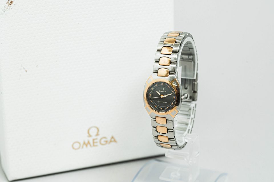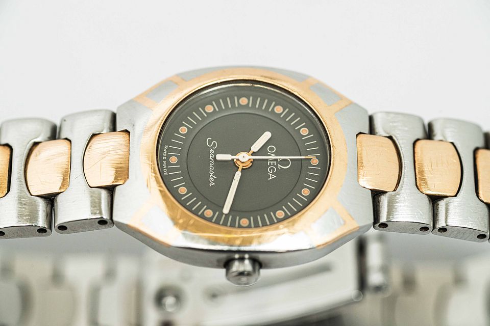 Full Set **18K 750** Vintage OMEGA Seamaster Polaris Cal.1460 Quartz 22mm Women's Watch From Japan