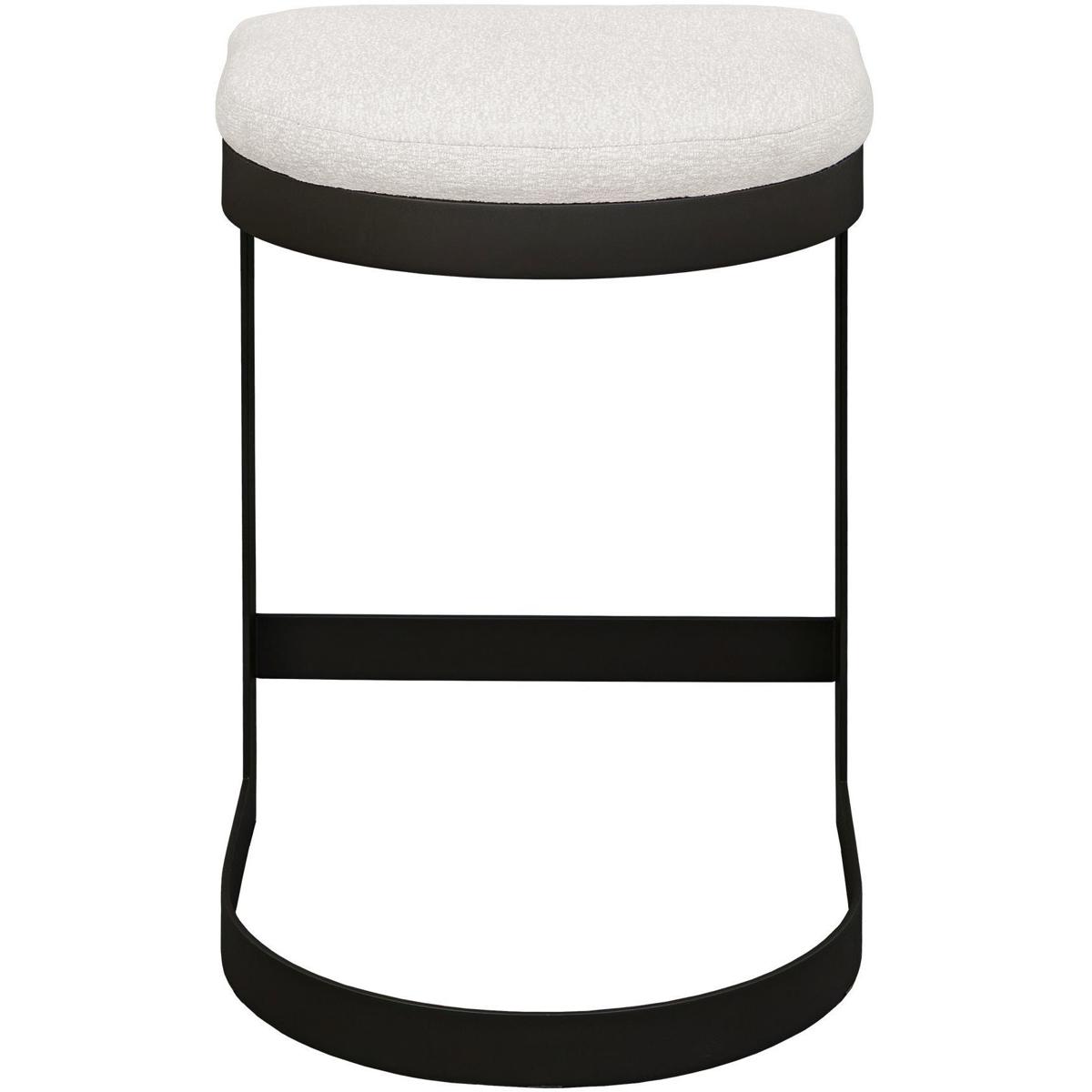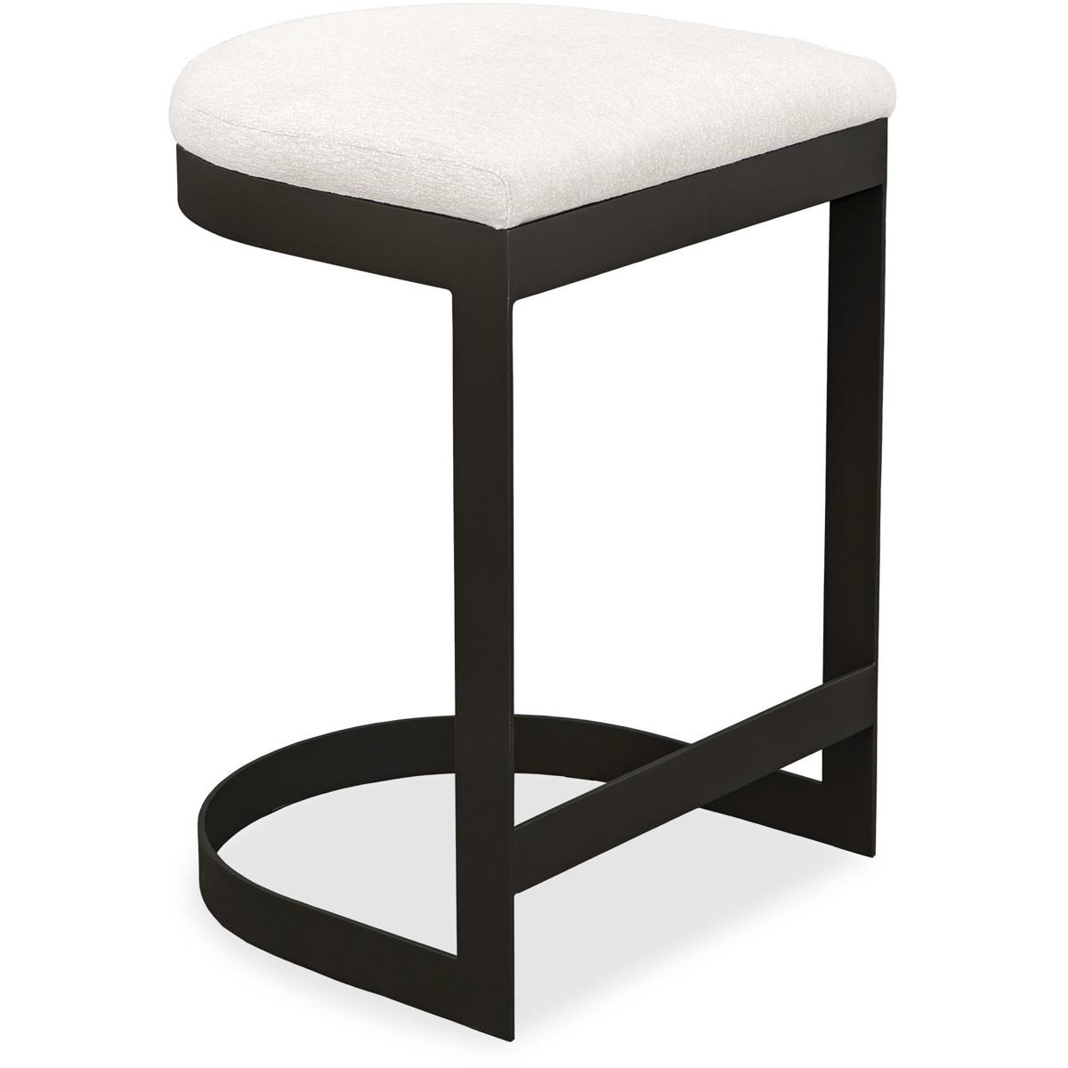 The Maude Outdoor Counter Stool Blends Industrial Style With Cozy Comfort, Featuring A Durable, Powder Coated Steel Frame In Java Black Paired With A Plush Cushion In Heavily Textured Taupe Gray Solution Dyed Acrylic Fabric.