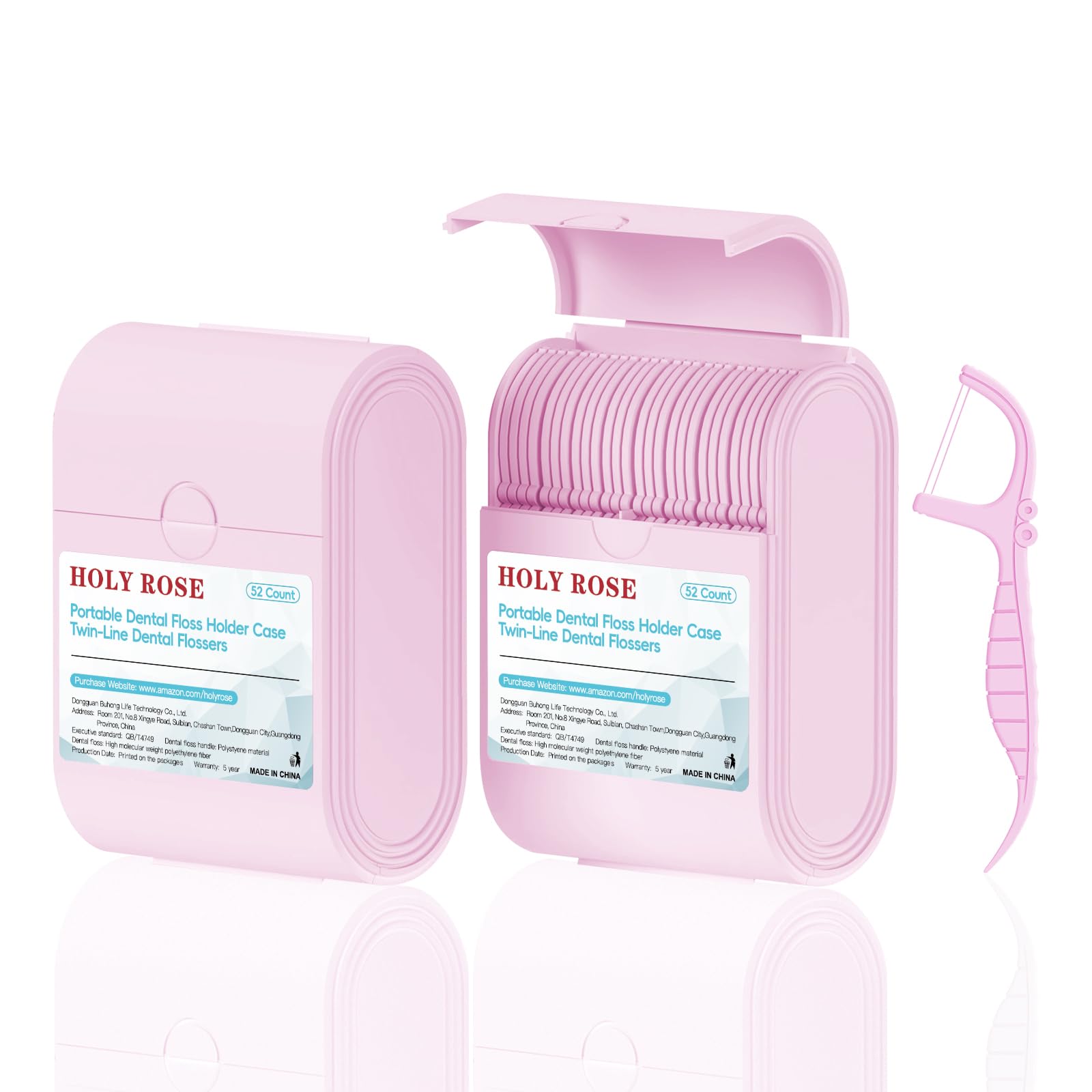 Holy Rose Pink Dental Floss Picks, 2 Packs Travel 52 Count (Pack of 2),