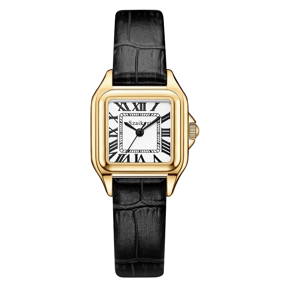 Szaikyri Classic Square Watches for Women with Roman Numerals Black-Gold