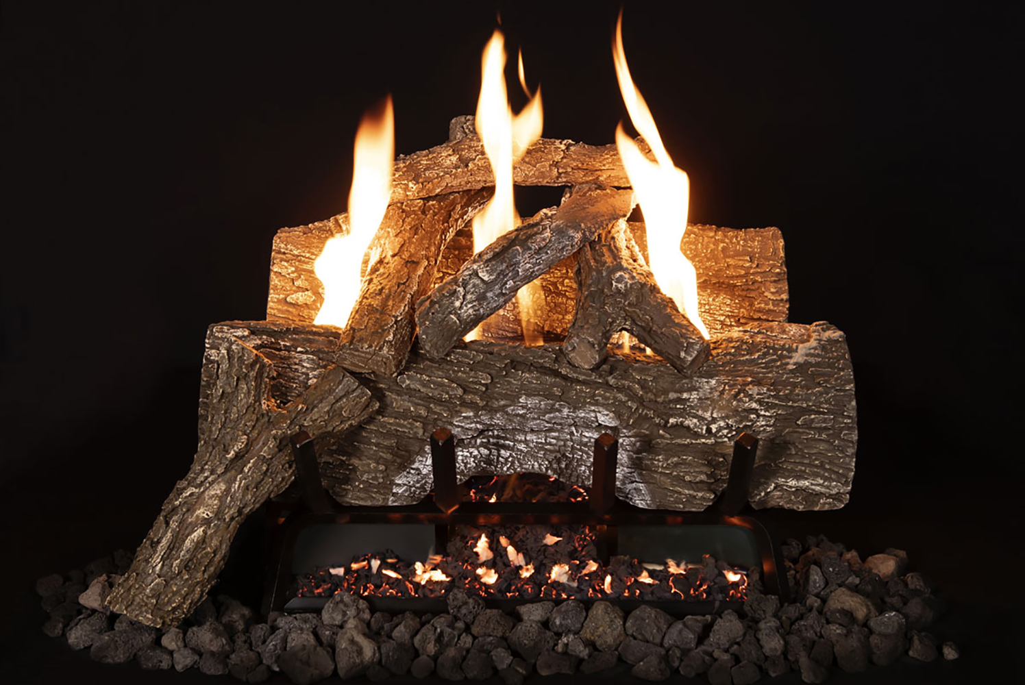 Grand Canyon 18" Arizona Weathered Oak Vent Less Gas Logs Only 7 PC SetGrand Canyon Gas Logs vent less gas log systems feature our Vulcan Burner & Boutique style logs. The Vulcan burner is available in Natural Gas or Liquid Propane, available with 3 different valve options & designed to be installed with any of our Boutique style logs. The burner is also duly listed for vented & vent less applications. The valve systems feature an exceptional turn down from 37K–19K BTU’s on the electronic & variable valves. The grate also features a natural wood style looking grate, enhanced deep ember bed & large lava rock to soften the embers edge. The 18” burner is available with our 18” logs & the 24” burner can be installed with 24” or 30” logs. The boutique style logs are available in Red Oak or Weathered Oak. Future log styles will also include Driftwood & Split. All of our logs are hand picked, hand painted & feature a ceramic refractory to help radiate more heat.