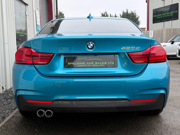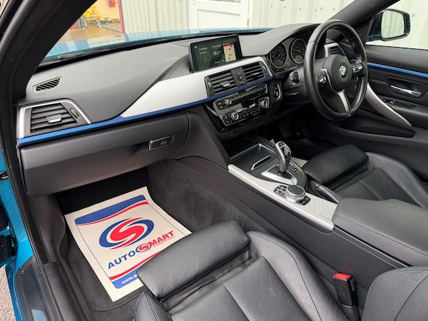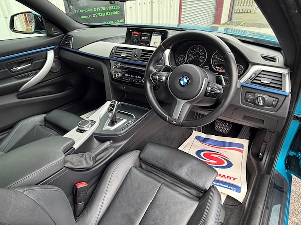We are delighted to offer this High Specification BMW 420D M Sport which comes with a whole host of factory fitted options these include, Dakota Leather - Black with Blue Contrast Stitching, Seat Adjustment - Front Electric with Driver Memory, Driver Comfort Package, Loudspeaker System - Harman Kardon, Enhanced Bluetooth Telephone Preparation with Wireless Charging, WiFi Hotspot Preparation, Comfort Access with Smart Opener, Extended Storage, Exterior Mirrors - Electrically Folding with Anti Dazzle, M Sport Plus Package, 19in Alloy Wheels - M Double Spoke Style 704M - Bi-Colour Orbit Grey, M Sport Braking System, High-Beam Assistant, Sun Protection Glazing, Advanced Parking Package, Reversing Assist Camera. This Stunning & High Specification BMW 420d M Sport finished in Snapper Rocks Metallic with Contrasting Black Dakota Leather. The specification of this superb BMW 420d M Sport is as follows - Black Dakota Leather M Sports Seats with Extendable Knee Supports - Electrically Adjustable M Sports Front Seats with Memory Facility - Variable Heated Front Seats - Adjustable Front Centre Armrest - Adjustable Steering Column - Air Con - Dual Zone Electronic Climate Control - Electric Front Windows with Global Closure - Electrically Adjustable & Heated Mirrors - Electric Folding Mirrors with Auto Dimming Lenses - Cruise Control with Speed Limiter - Touchscreen Professional Widescreen Satellite Navigation & Professional Media System - RDS DAB Digital Stereo & CD Player - BMW Apps inc Spotify - Harddrive Music - Music Collection - Bluetooth Music Streaming - USB - Harman Kardon Surround Sound System - Bluetooth Phone with Wireless Charging - Auto Dimming Rear View Mirror - Auto Lights & Auto Wipers - Aluminium Hexagon Interior Trim with Estoril Accents - Leather Multi Function Steering Wheel with Gear Shift Paddles - Comfort Access - Rear Centre Armrest with Cupholders - 2 x 3 Point Rear Seat Belts - Isofix Child Seat Anchor Points - Split Folding Rear Seats - BMW 420d M Sport Bodystyling Including - M Sport Front & Rear Bumpers - M Sport Side Skirts - M Sport Rear Diffuser - 19"" M Double Spoke Alloy Wheels finished in Orbit Grey & Silver 704M - M Sport Brakes Finished in Estoril Blue - M Suspension - LED Headlights with Signature LED Daytime Running Lights - Auto High Beam Assist - Sun Protection Glass - Advanced Parking Pack - Front & Rear Parking Sensors - Park Assist - Full Colour Reverse Camera with Guidance Lines, 2 Keys, Full BMW Service History, Serviced @ 13892 / 22684 / 33428 & 42773 Miles this being A Major Service, 12M MOT, 6 Months Platinum Comprehensive Nationwide Parts & Labour Warranty