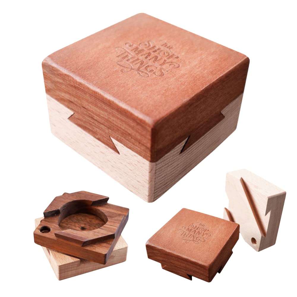 Official Impossible Dovetail Puzzle Box from The Shop of Many Things. Stump your players with a box that appears to be impossible to open. It's a great challenge for a session and a super reveal for a secret message! The puzzle box is made of high quality solid wood and has a laser etched logo on the top. There's a secret cavity inside thats big enough to hold a secret message, or even a small item.