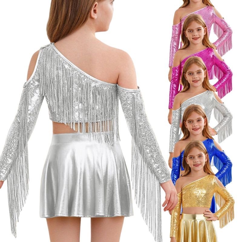 Women Set Shoulder Costume Cutout Dress Holographic Cosplay A-line Outfits For