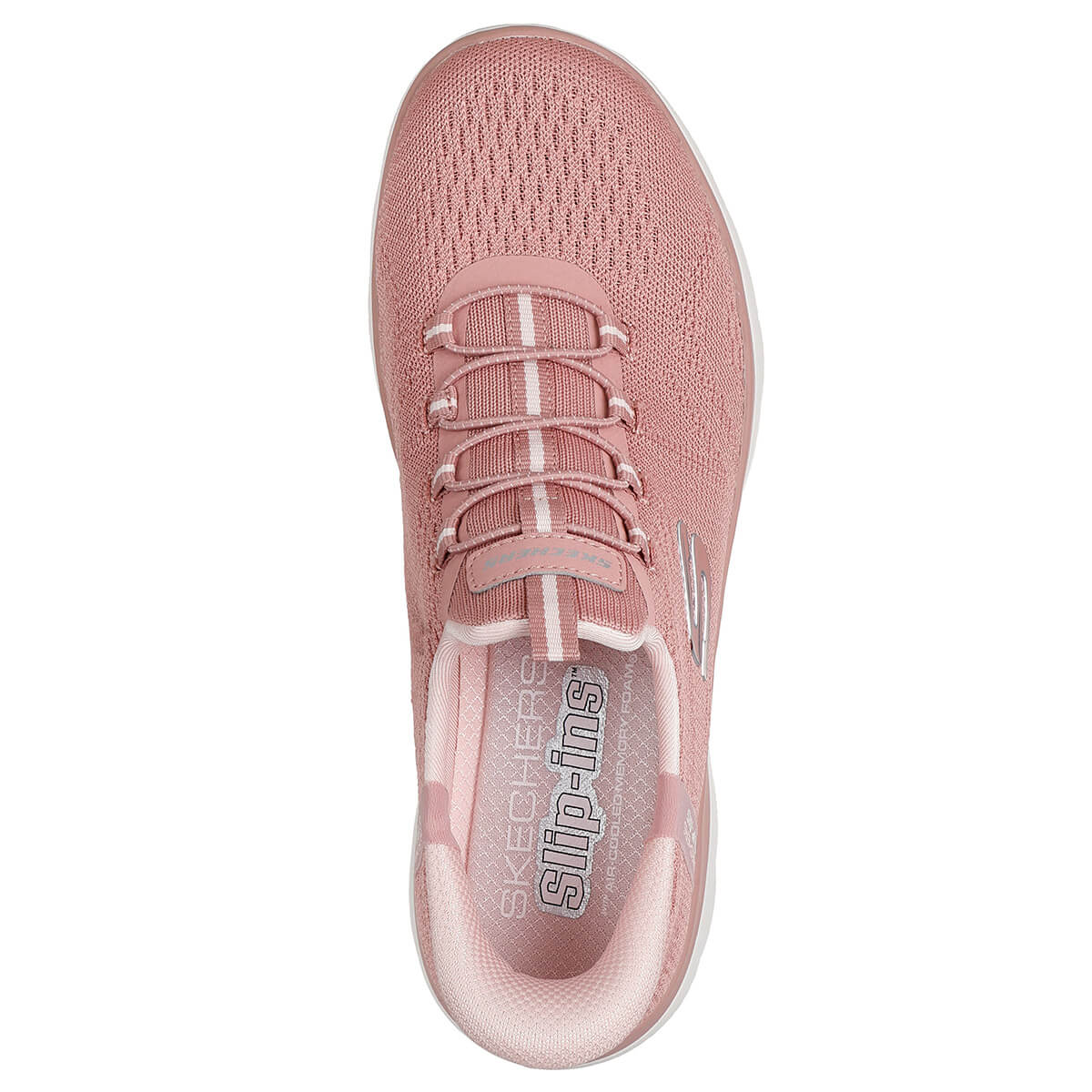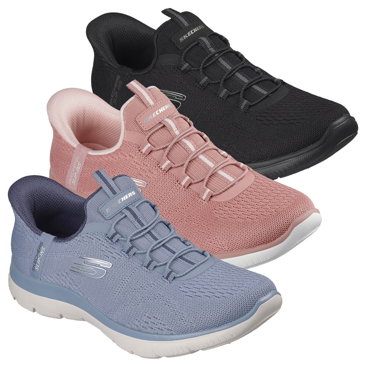 The Skechers Slip-Ins: Summits – Dream Chaser Trainers are built for faster, easier days on the move, combining hands-free convenience with lightweight, breathable comfort. Designed with Skechers Hands Free Slip-ins technology and the supportive Heel Pillow, you can step in quickly while enjoying a secure, stable fit that stays comfortably in place. The engineered mesh upper enhances airflow, while fixed stretch laces create a No Tie Fit that never comes untied—ideal for commuting, travel, and everyday errands. Underfoot, a Skechers Air-Cooled Memory Foam insole delivers instant cushioning with pressure relief and improved breathability, keeping your feet feeling fresher for longer. A lightweight, shock-absorbing midsole smooths out impact, and a flexible traction outsole provides dependable grip across daily surfaces. Crafted with 100% vegan materials and fully machine washable, Dream Chaser is a practical, comfort-first trainer finished with signature Skechers logo detailing and a subtle 1-inch heel height.