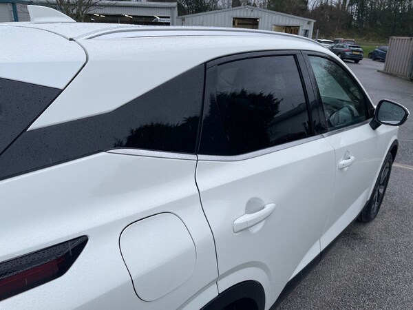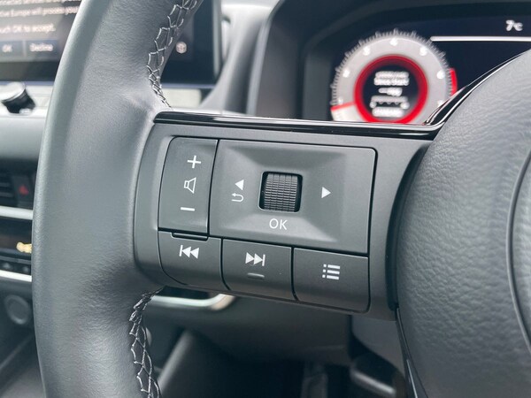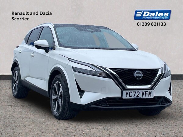 The 2022 Nissan Qashqai N-Connecta MH Dig-T in White with 24644 miles on the clock is a sophisticated and feature-packed vehicle. This sleek 5-door car comes with 18"" diamond cut alloy wheels, LED headlights and rear lights, and a striking rear roof spoiler. Inside, you'll find a modern interior with ambient lighting around the centre console and chrome interior door handles.The Qashqai is equipped with a range of safety features including blind spot warning, rear view camera, Intelligent Cruise Control, lane departure warning system, and intelligent emergency braking with pedestrian recognition. Comfort is prioritised with dual-zone automatic climate control, electrically adjustable driver's seat with lumbar support, and height-adjustable front headrests. The vehicle also boasts many technological features, such as a 12.3"" TFT digital combimeter, Nissan Connect 12.3"" touchscreen infotainment system with navigation, and Apple CarPlay integration.This Nissan Qashqai offers a spacious and practical interior with 3 bench rear seats in the 2nd row, plenty of storage options including front and rear door storage, cupholders, and a glovebox with light. For added convenience, there are front and rear USB connections, remote central door locking, and Google Maps services. With its stylish design, advanced safety technologies, and creature comforts, the Nissan Qashqai N-Connecta is a smart choice for those looking for a reliable and modern SUV.