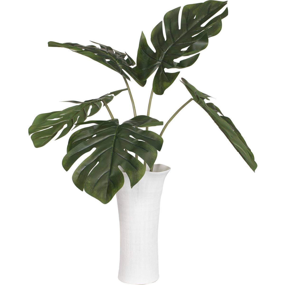 Bold And Architectural, This Monstera Arrangement Makes A Striking Statement Of Modern Greenery. Large, Sculptural Leaves Fan Gracefully From A Tall, Subtly Textured White Ceramic Vase, Creating A Dramatic Silhouette That Feels Both Organic And Refined.