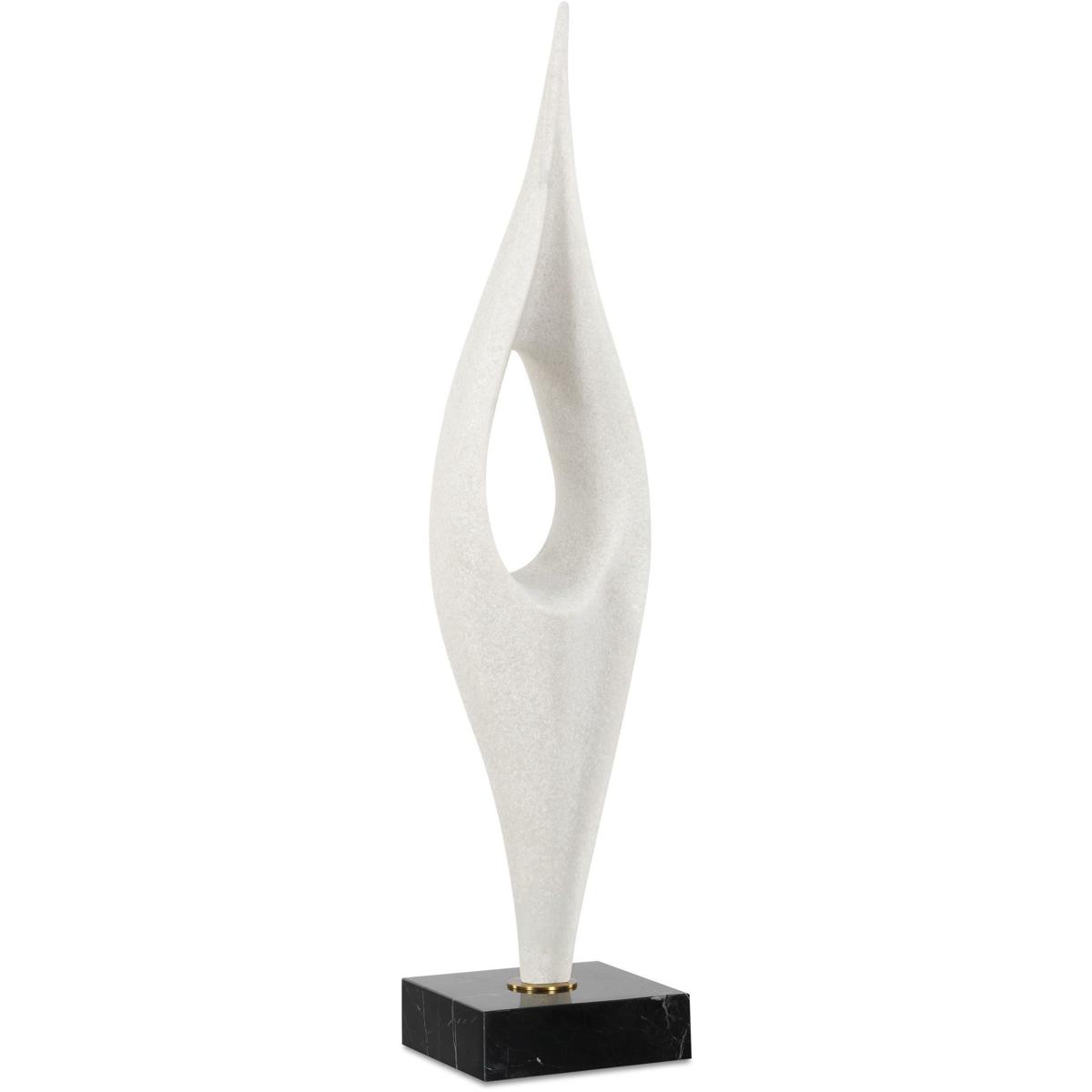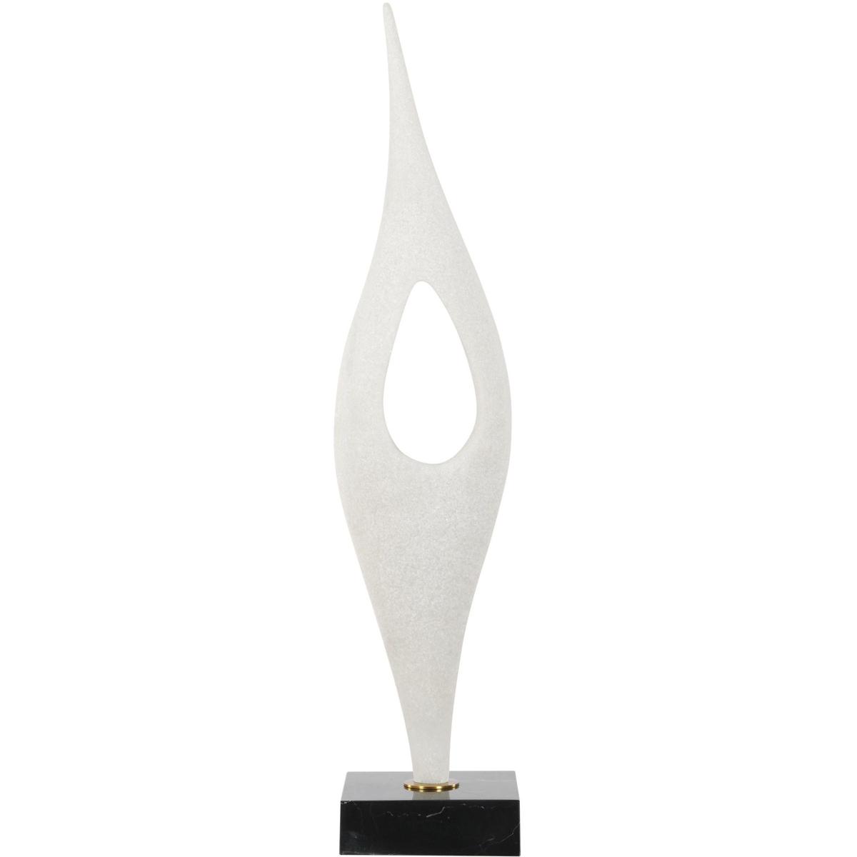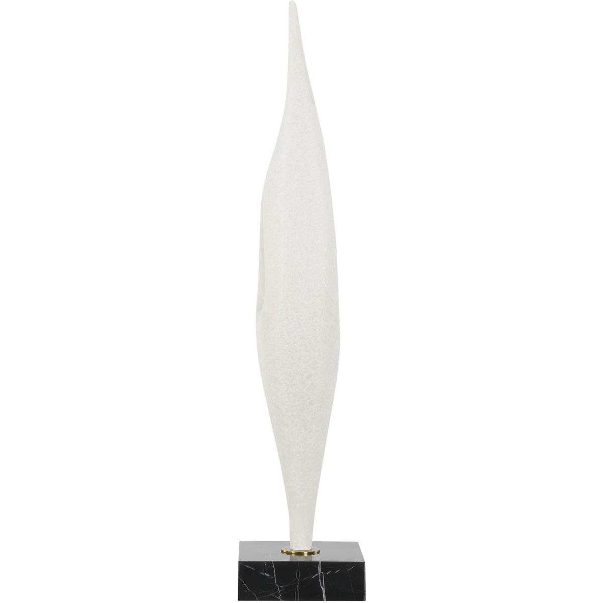 Crafted In A Matte White Man-made Stone That Accurately Replicating The Look Of Thassos Marble, This Elegant Sculpture Features A Fluid, Modern Silhouette That Makes A Bold Statement. It Rests Gracefully Atop A Black Marble Base With Subtle White Veining, Accented With A Delicate Antique Brass Plated Iron Detail.