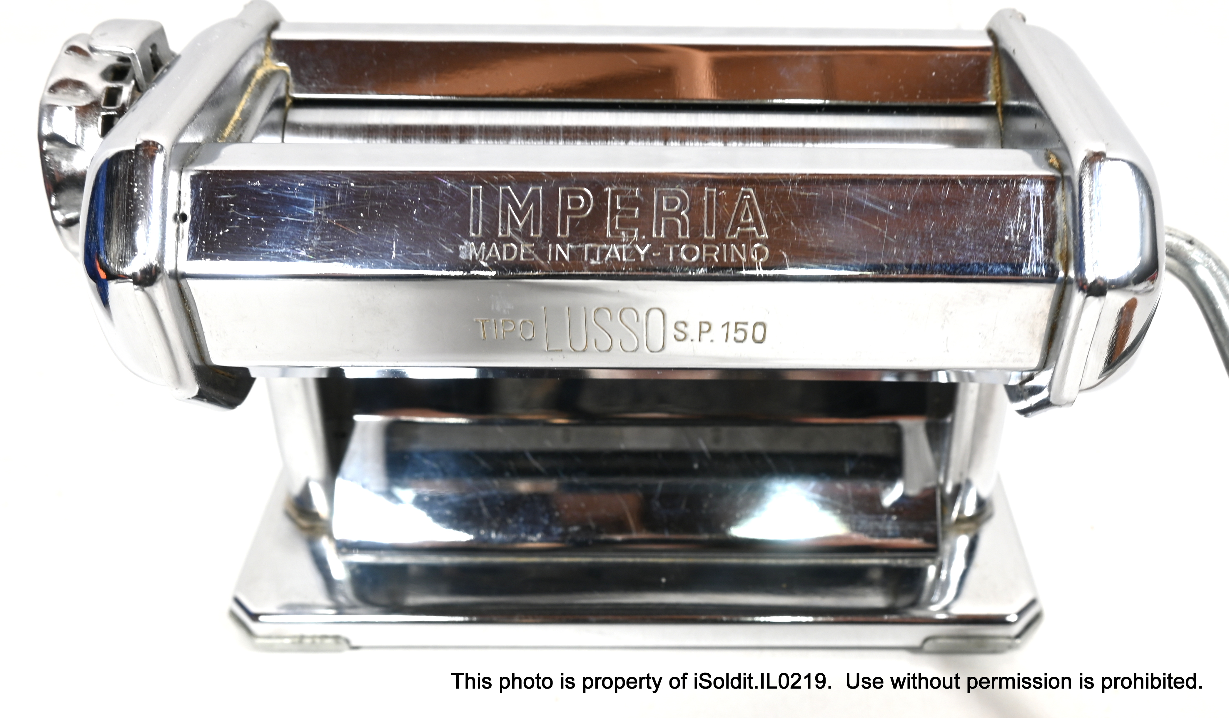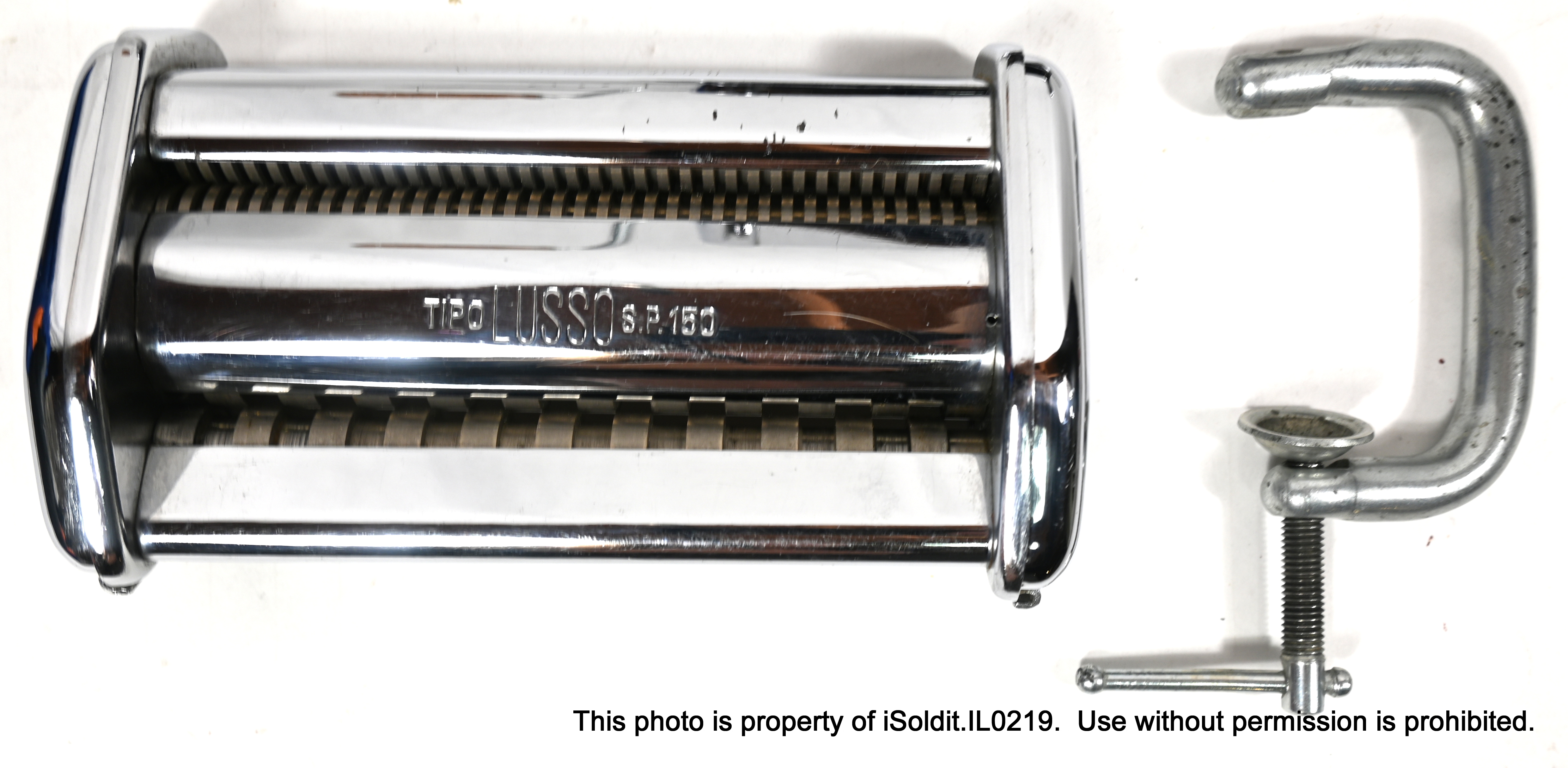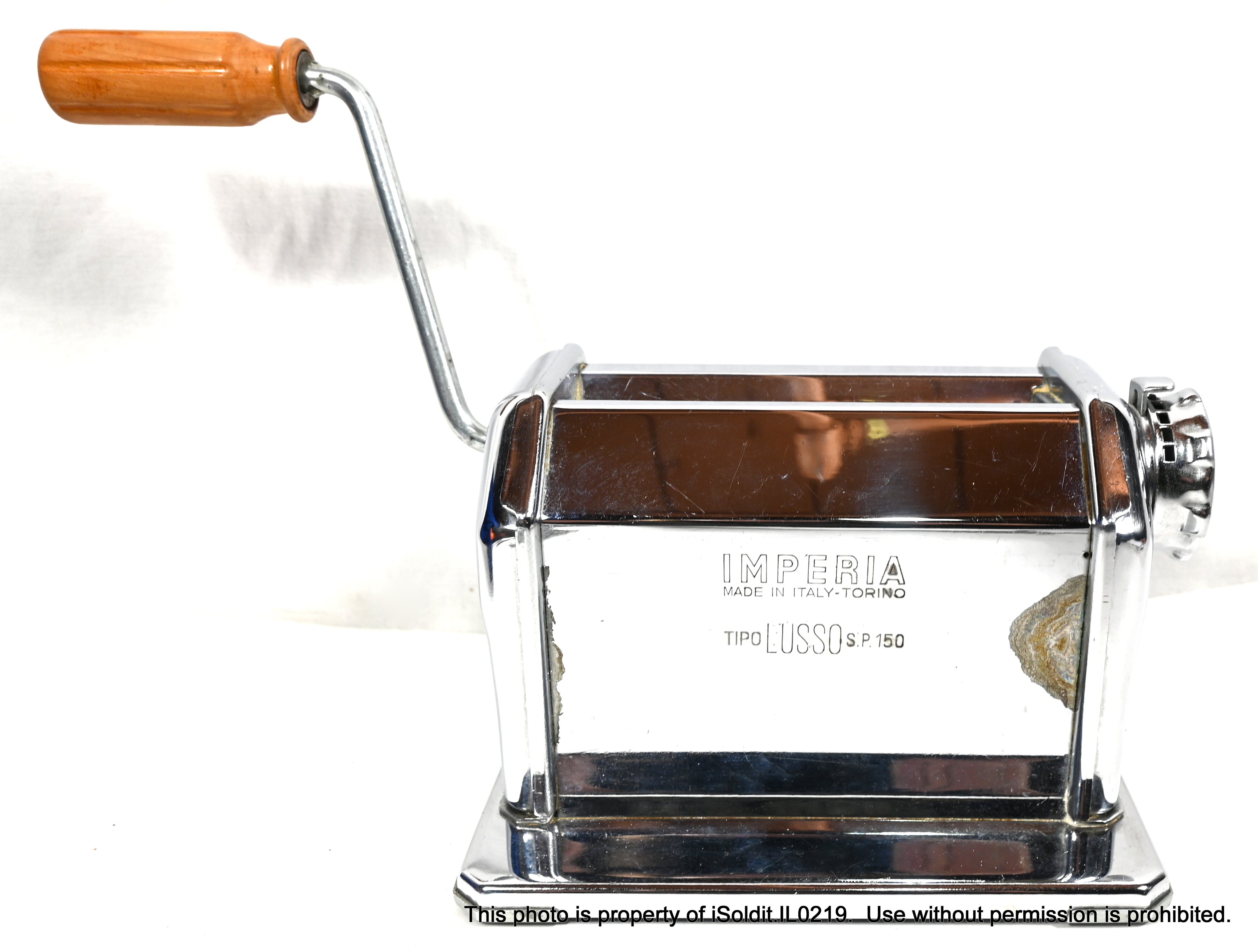 For sale here is a VINTAGE IMPERIA TIPO LUSSO PASTA MACHI E, Model SP 150. Made in Torino, Italy. Included with this item is a PASTA CUTTER attacment, the hand crank, and a table-mount C-clamp. The manual design allows for precise control over the thickness and texture of the pasta, resulting in perfect noodles every time! Pre-owned, item is in good overall condition, but does have some scratches, light wear and a blemish consistent with age and usage.