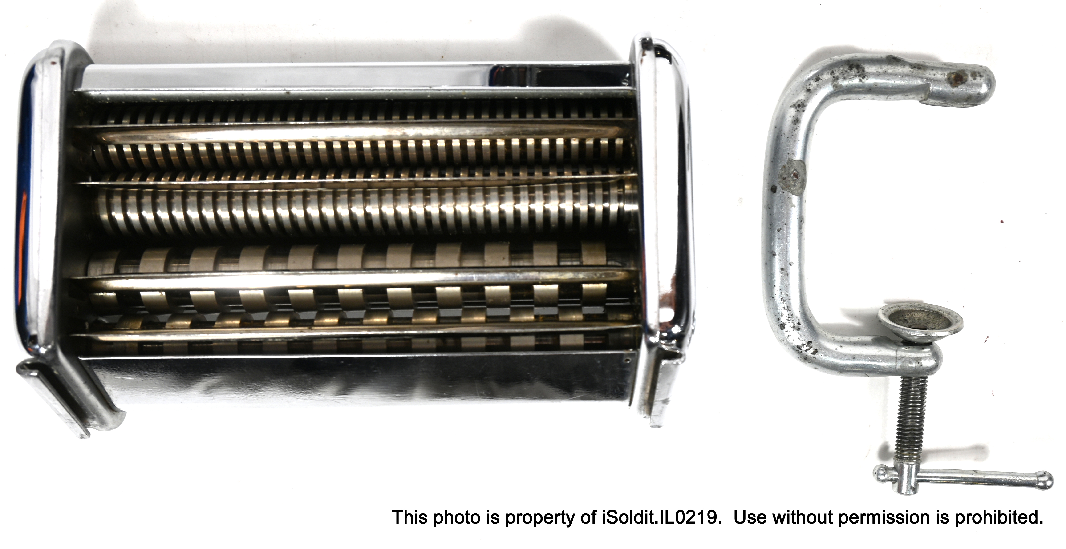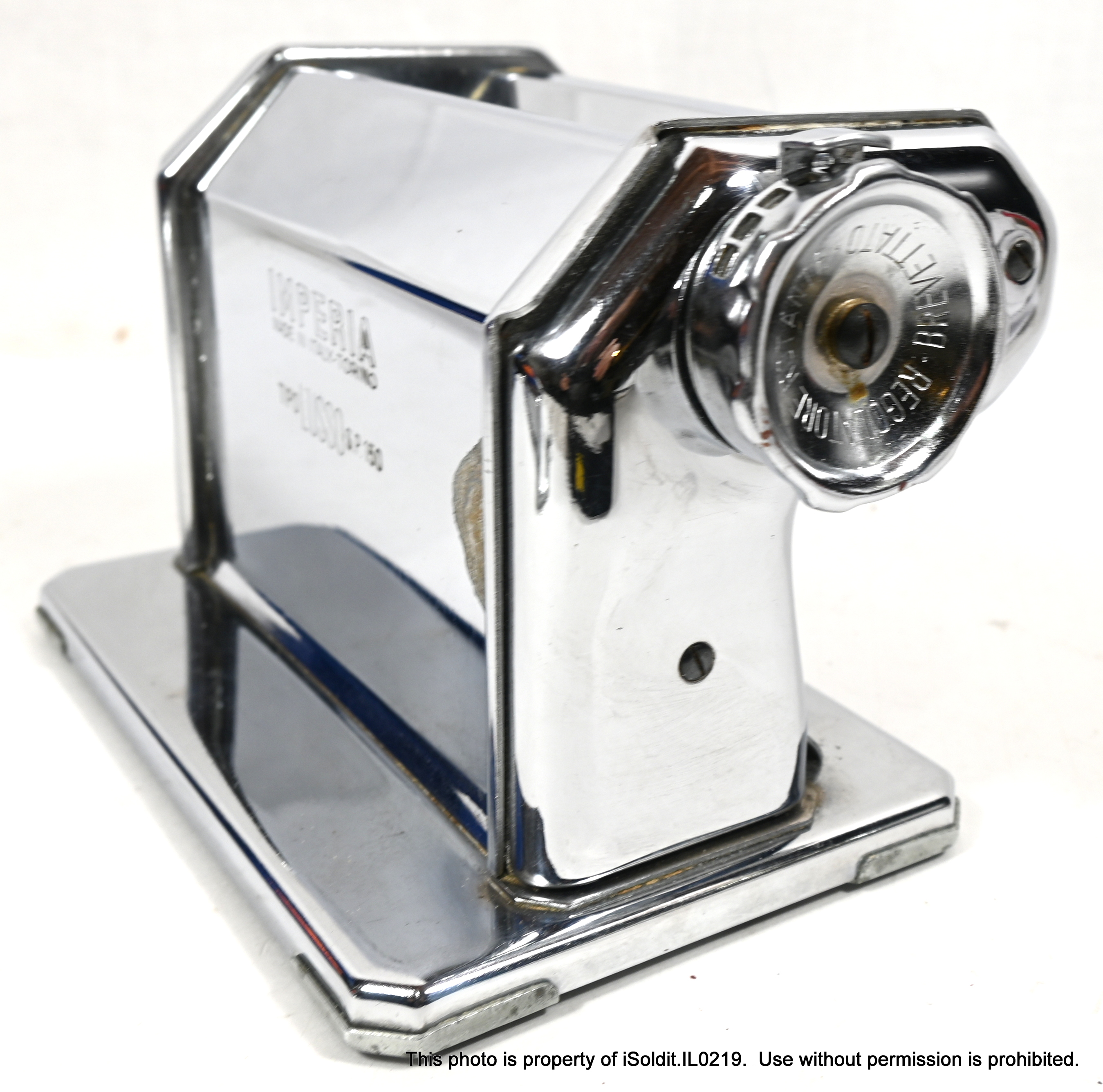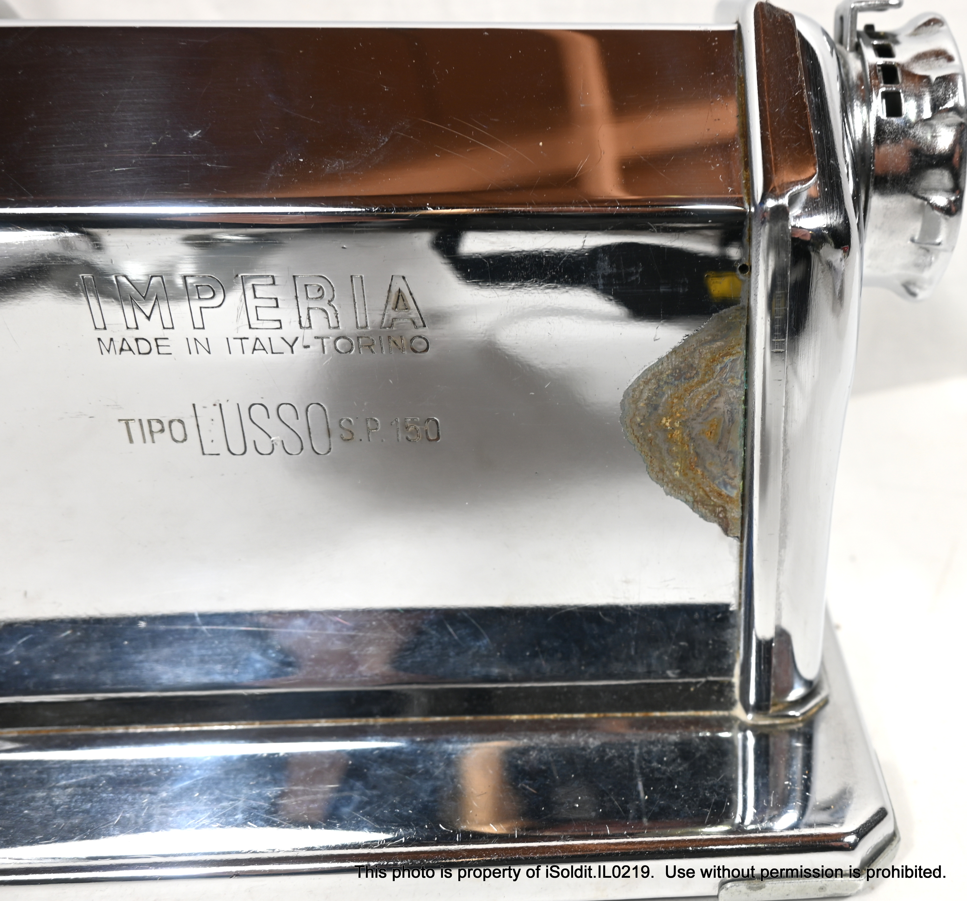 For sale here is a VINTAGE IMPERIA TIPO LUSSO PASTA MACHI E, Model SP 150. Made in Torino, Italy. Included with this item is a PASTA CUTTER attacment, the hand crank, and a table-mount C-clamp. The manual design allows for precise control over the thickness and texture of the pasta, resulting in perfect noodles every time! Pre-owned, item is in good overall condition, but does have some scratches, light wear and a blemish consistent with age and usage.