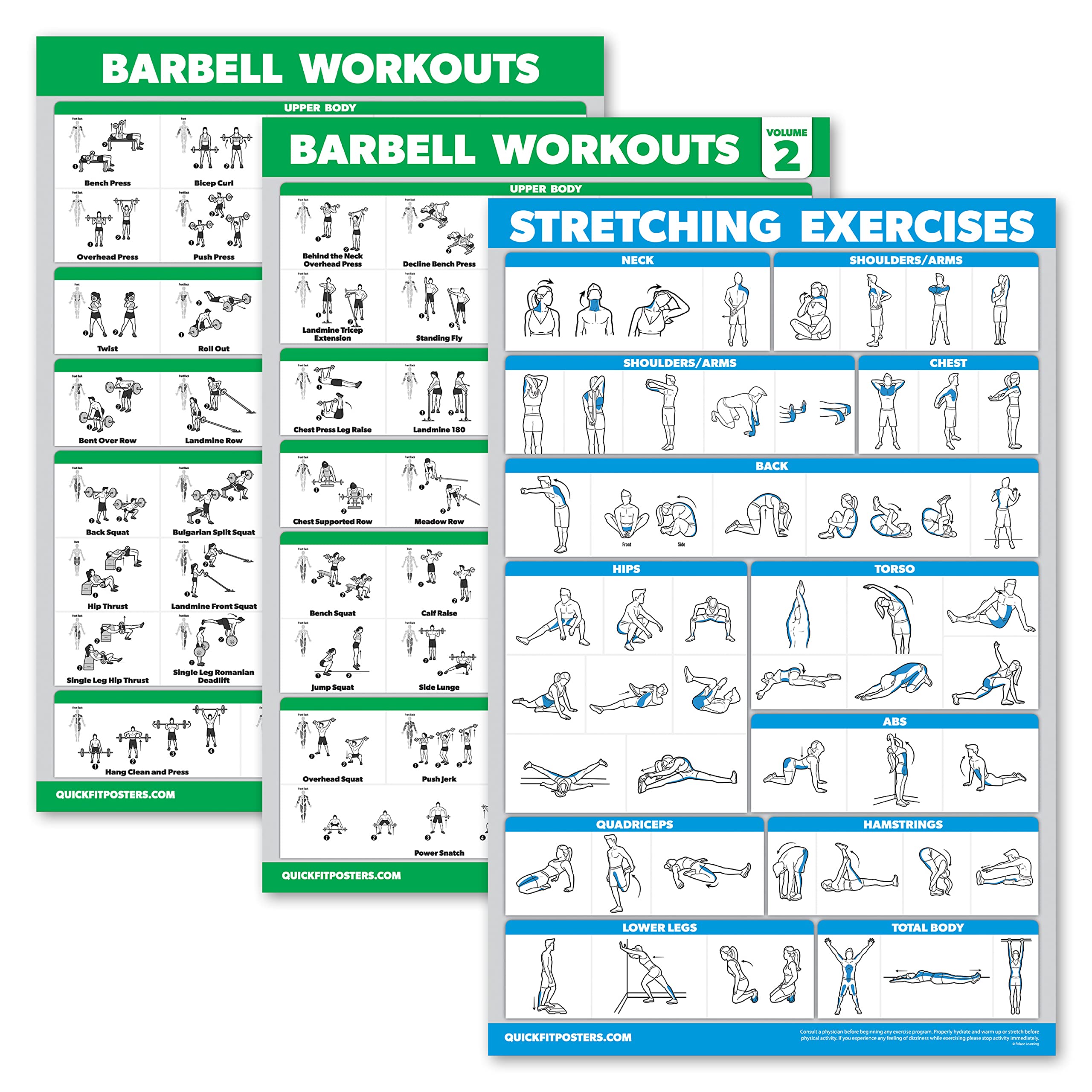 Palace Learning 3 Pack - Barbell Workout Posters Volume 18" x 24", LAMINATED