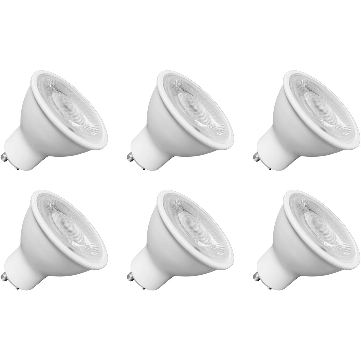 Dimmable 6.5W LED GU10 light bulb 3000K. Pack of 6