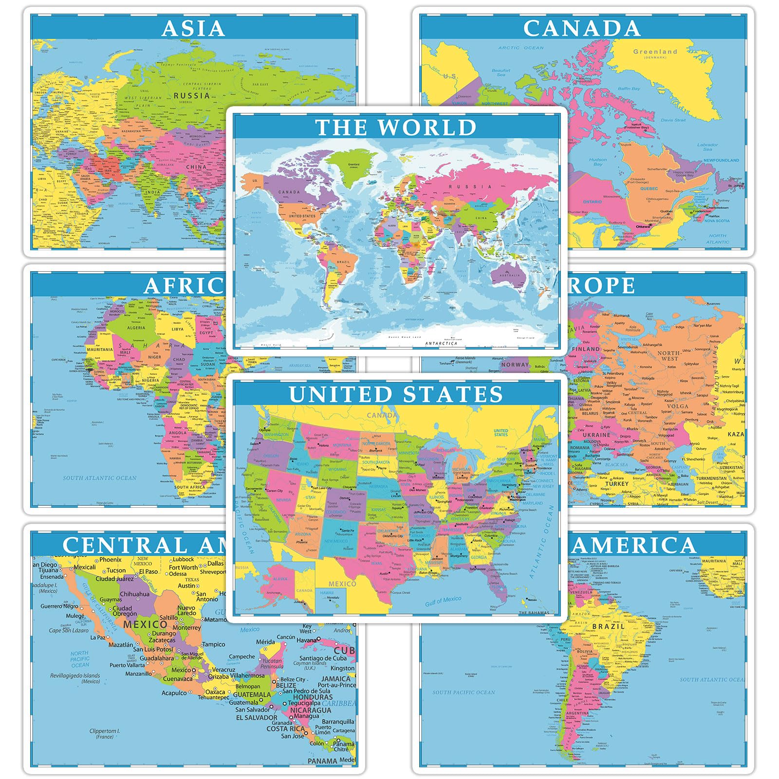 【Educational for Kids Placemats】You will receive 8 pieces educational preschool learning placemats in 8 different designs, including World, USA, Europe, Asia, Africa, South America, Central America, Canada maps. Good early education tools help you infiltrate early education into your child's daily life, and placemats make your child's dinner a time for learning. Great for pre-K and grade school kids.