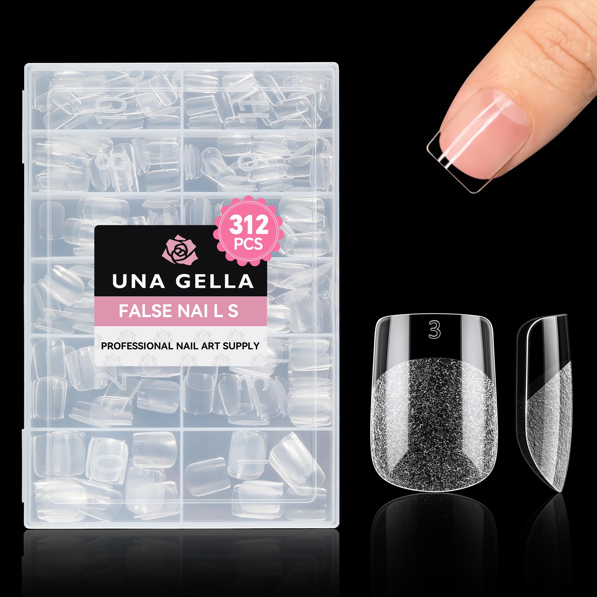 UNA GELLA Extra Short Square Nail Tips, 312pcs XS (XS), Clear