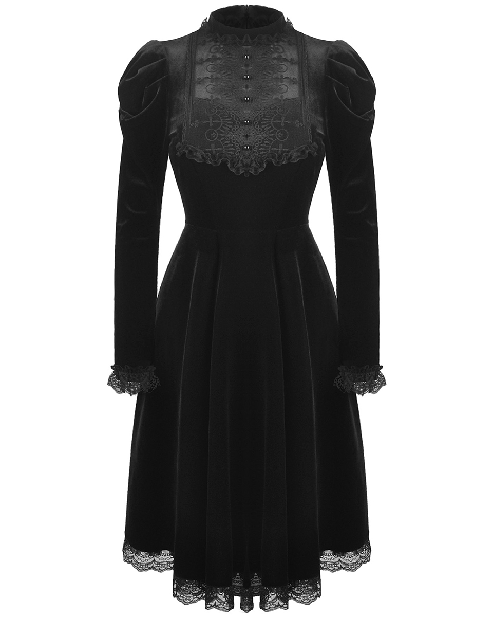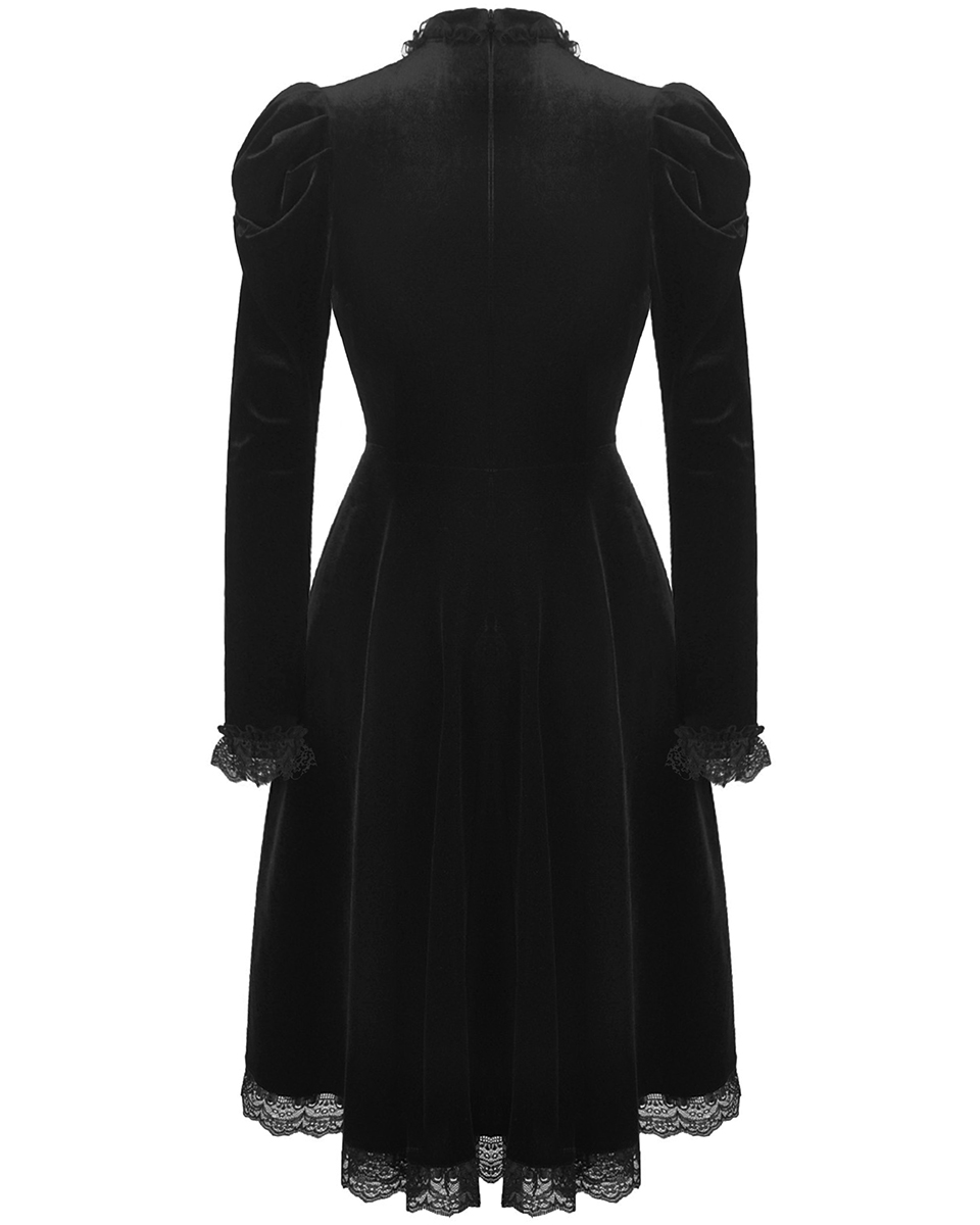 Dark In Love Gothic Dress Black Velvet Lace Steampunk VTG Victorian Lolita Doll