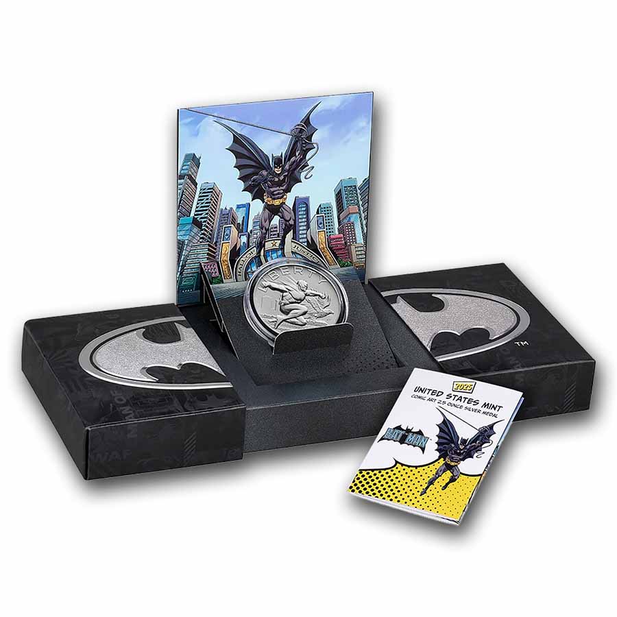 This Batman silver medal is a continuation of the Comic Art Coin and Medals program at the U.S. Mint that celebrates the American roots of comic book art. Created in collaboration with Warner Bros., these medals were designed to remind us of the American values each of our favorite heroes embodies in their stories. These designs were crafted by Chief Engraver Joseph Menna, who has a history in comic art as an artist for DC comics.