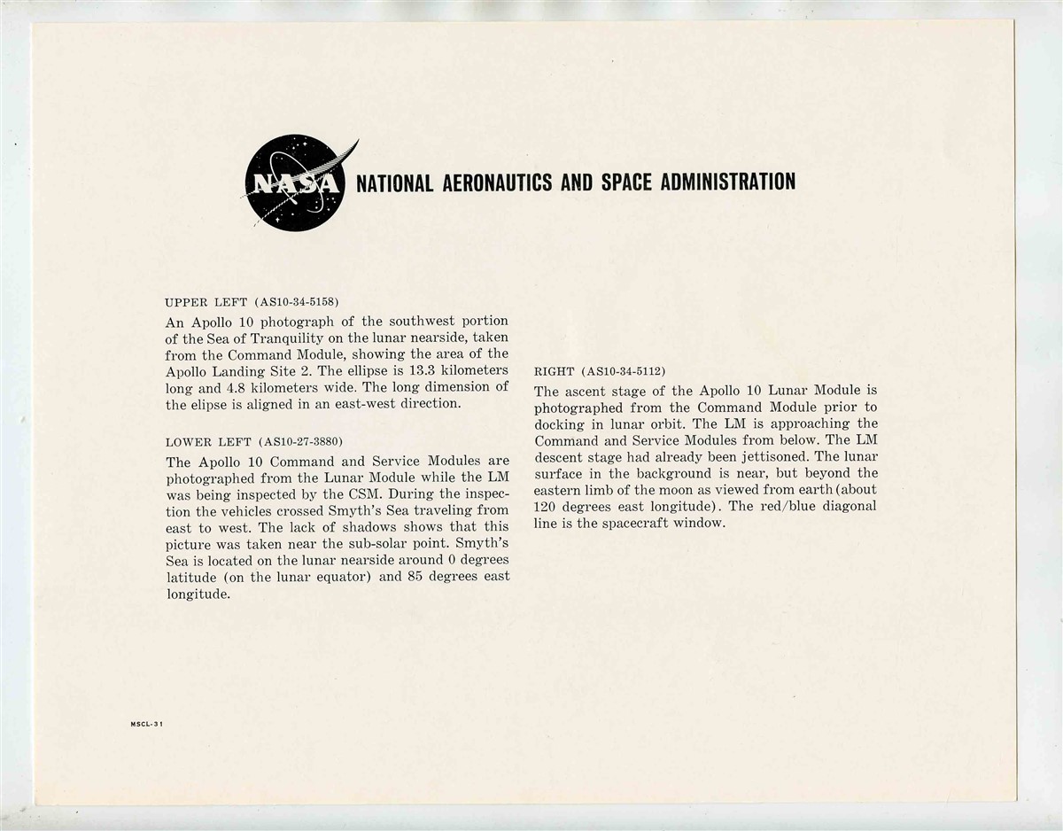 NASA Photo Apollo 10 Lunar Orbit Mision May 18-26 1969
