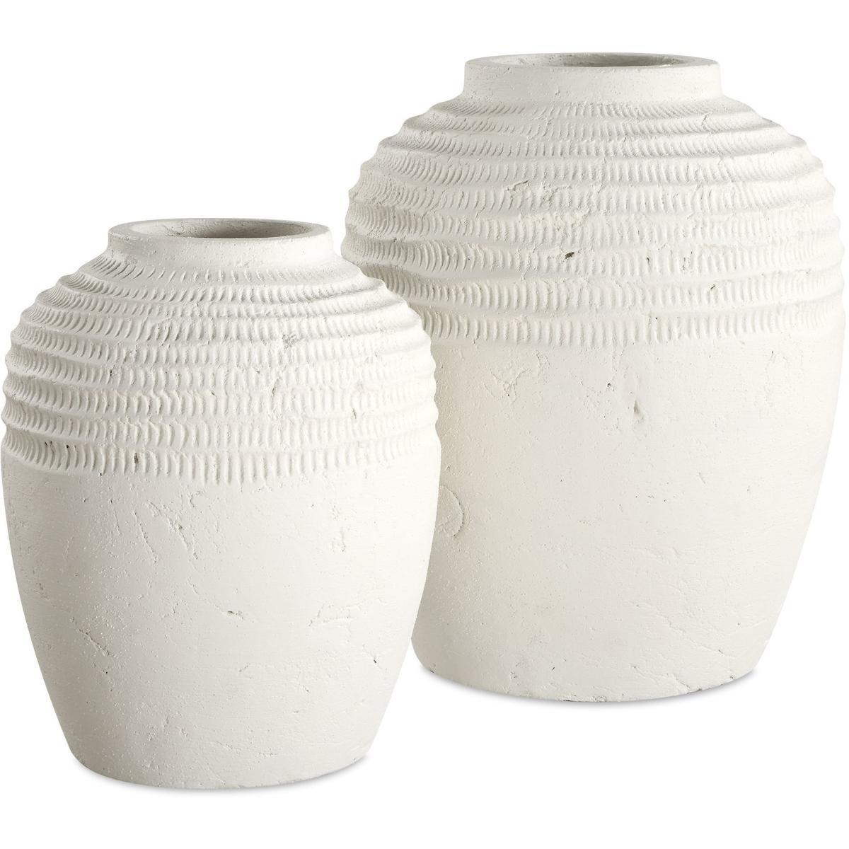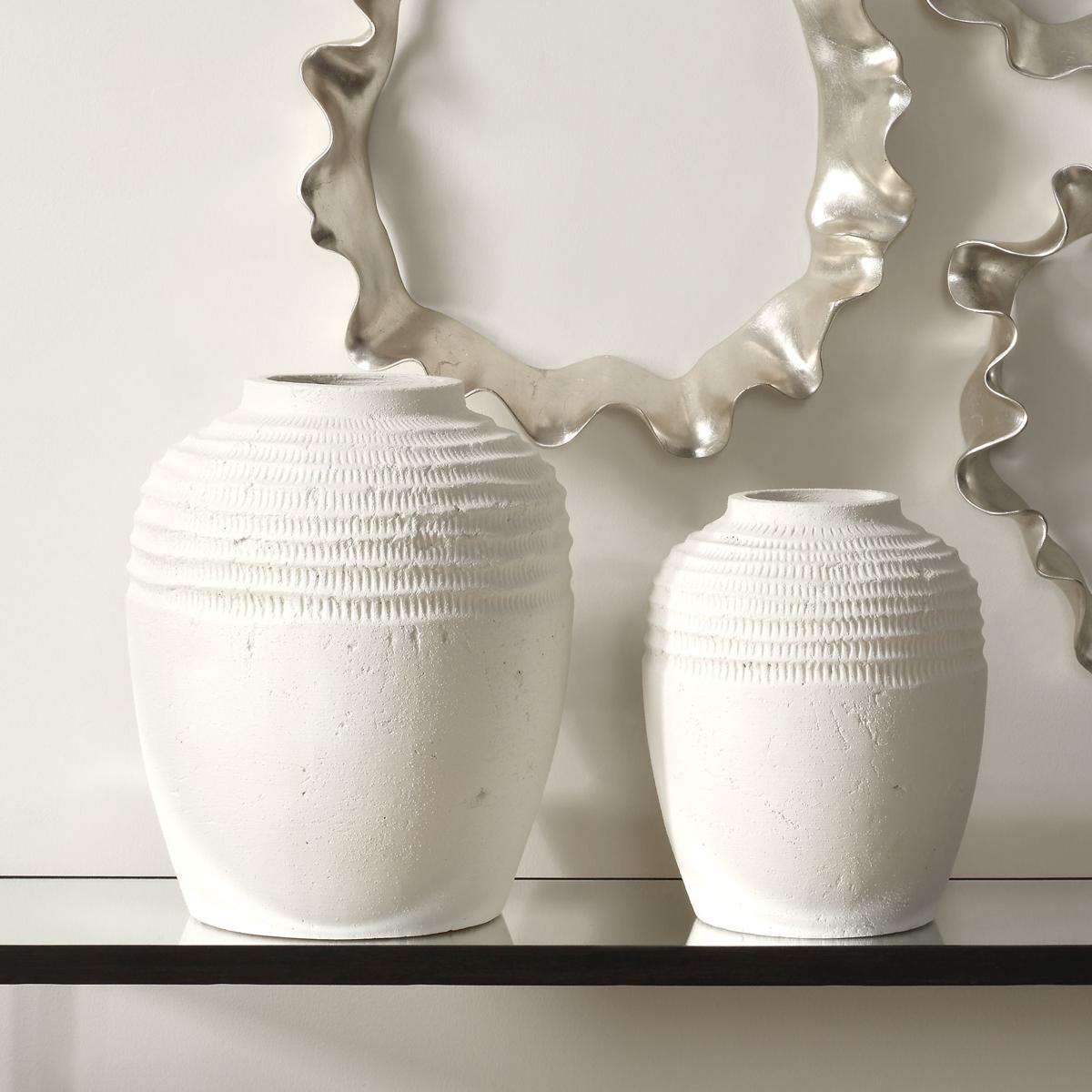 Elevate Your Decor With These Elegantly Textured Ceramic Vases, Featuring A Refined Chalk White Finish And Intricate Ridged Detailing. Their Artisanal Design Bring A Sophisticated, Modern Touch To Any Space. Perfect For Displaying Florals Or Standing Alone As A Statement Piece. Sizes: S-9x11x9, L-12x14x12