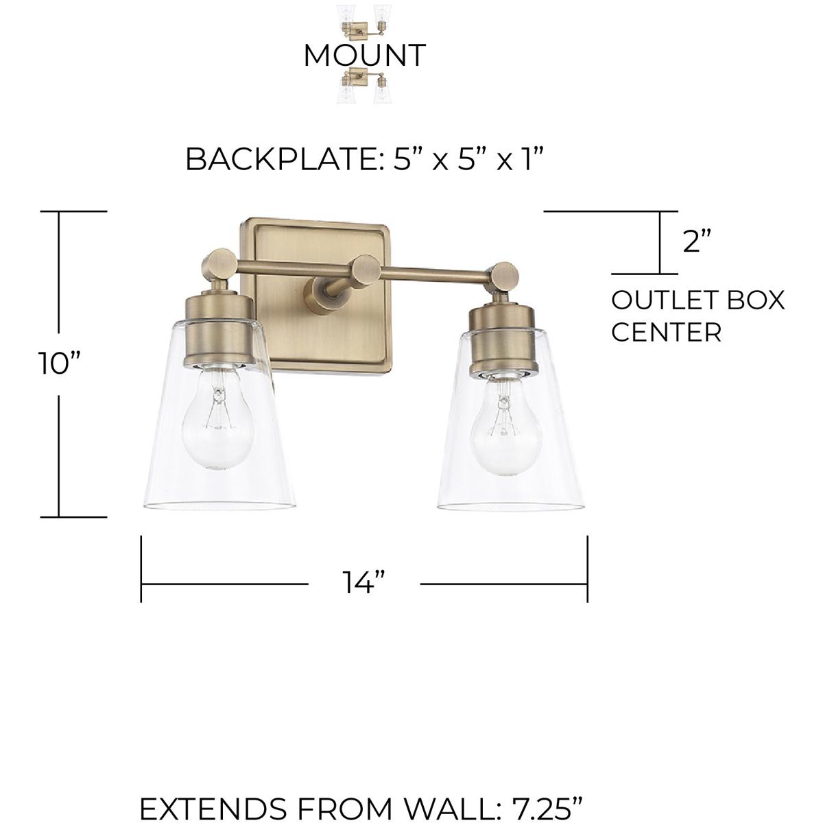 14" 2-Light Vanity in Aged Brass with Clear Cone Glass Shades