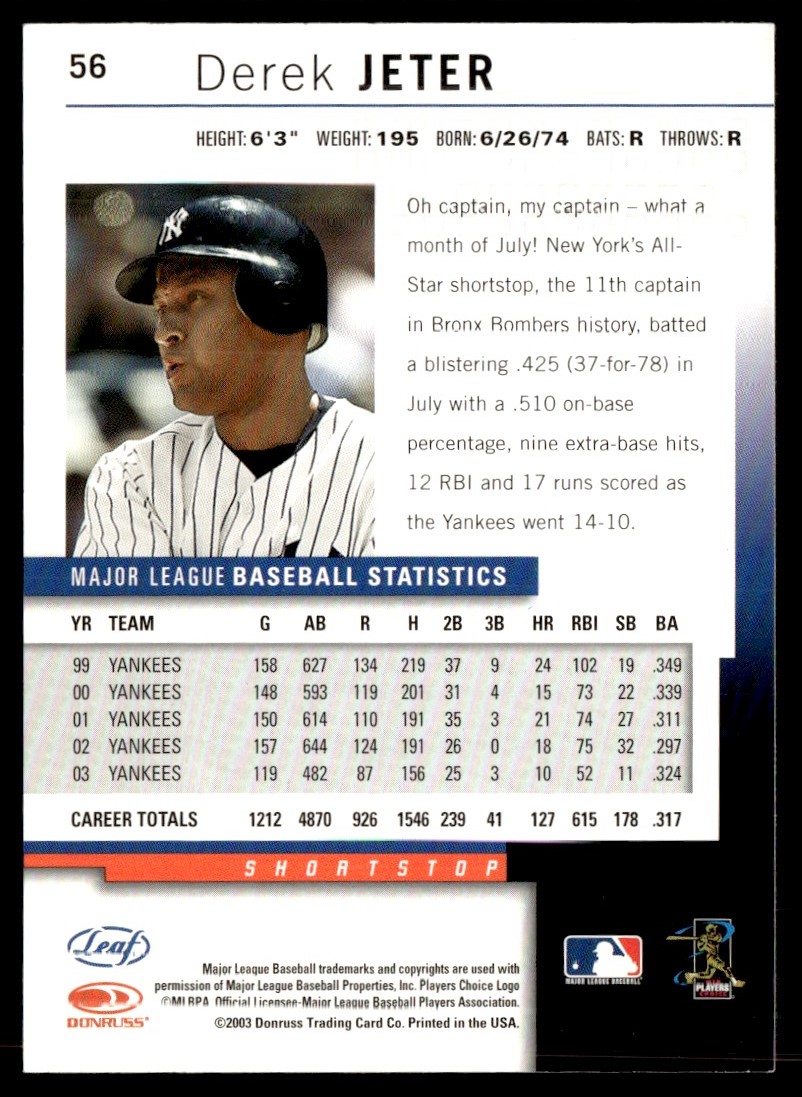 2004 Leaf Second Edition Derek Jeter New York Yankees #56
