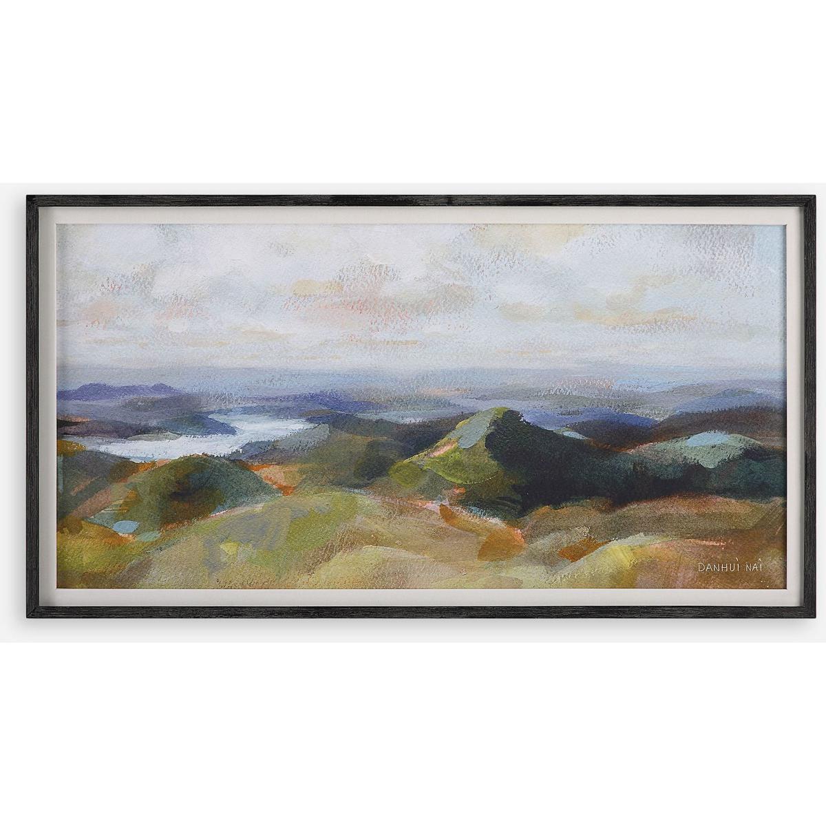 Majestic And Tranquil, This Landscape Artwork Showcases A Bold Array Of Hues That Could Be Found In Nature. Surrounded By A White Linen Mat And Black Wood Grain Frame. Artwork By Danhui Nai.