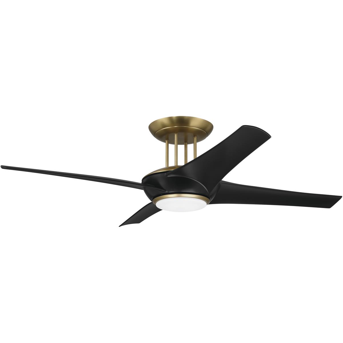Sharp angular blades come together at the center housing of this fan for a modern, yet transitional look. Available in finishes that match most interior spaces, select from Matte Black, Satin Nickel with Greywood, Natural Aged Brass with White Blades and Charcoal with Driftwood Blades. With a DC motor and magnetic wall mounted remote that is included, this fan is sure to be a stylish addition to your space.