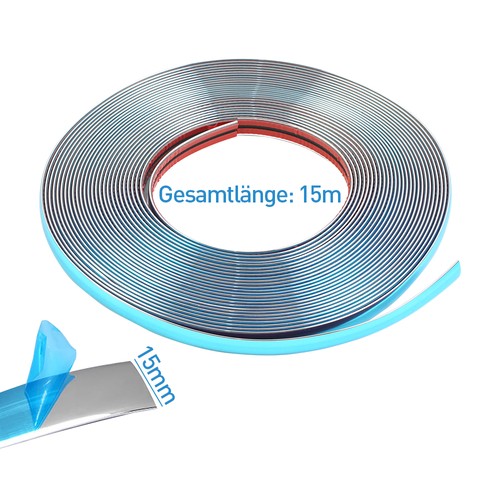 15m Chromleiste Zierleisten 15mm Flexibel Selbstklebend Universal Auto Kfz Deko