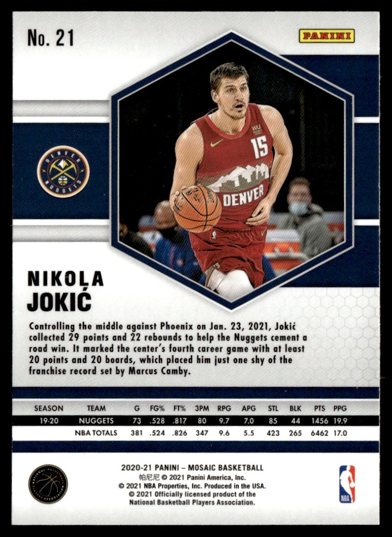 2021-22 Panini Mosaic Nikola Jokic Denver Nuggets #21