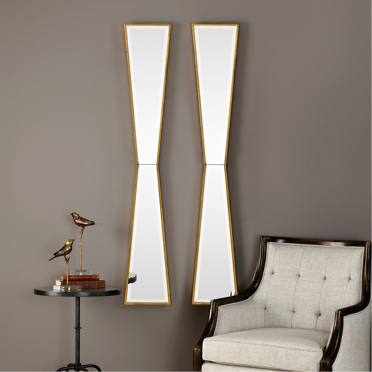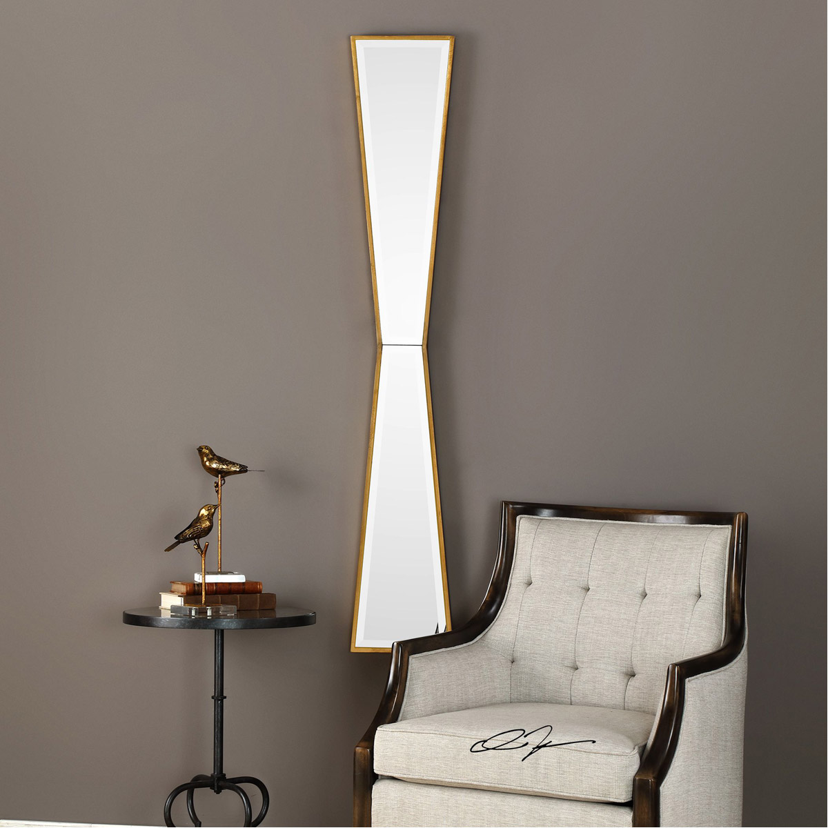 This Bow Tie Design Features A Solid Wood Frame Showcasing A Delicate Profile, Hand Finished In A Lightly Antiqued Gold Leaf. Mirror Is Beveled. May Be Hung Horizontal Or Vertical.