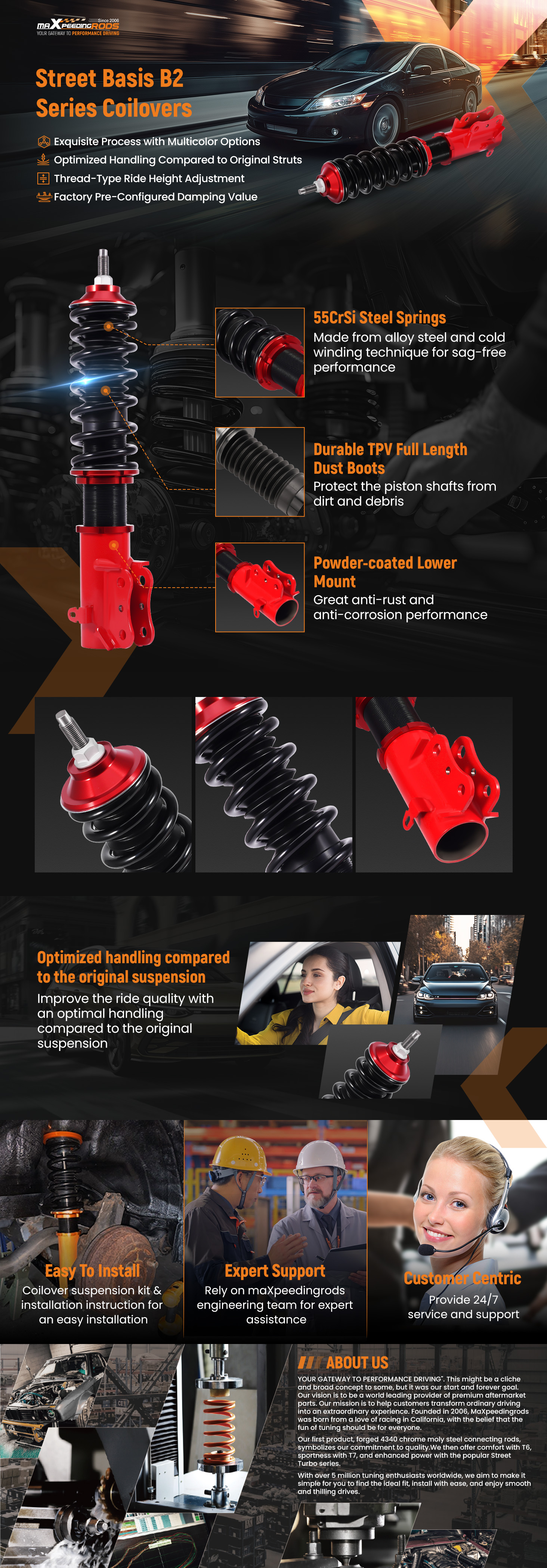 1. Höhenverstellung zur Absenkung um 25–75 mm (je nach Fahrzeugmodell), wodurch der Schwerpunkt gesenkt und eine aggressivere Fahrzeugpose erreicht wird.