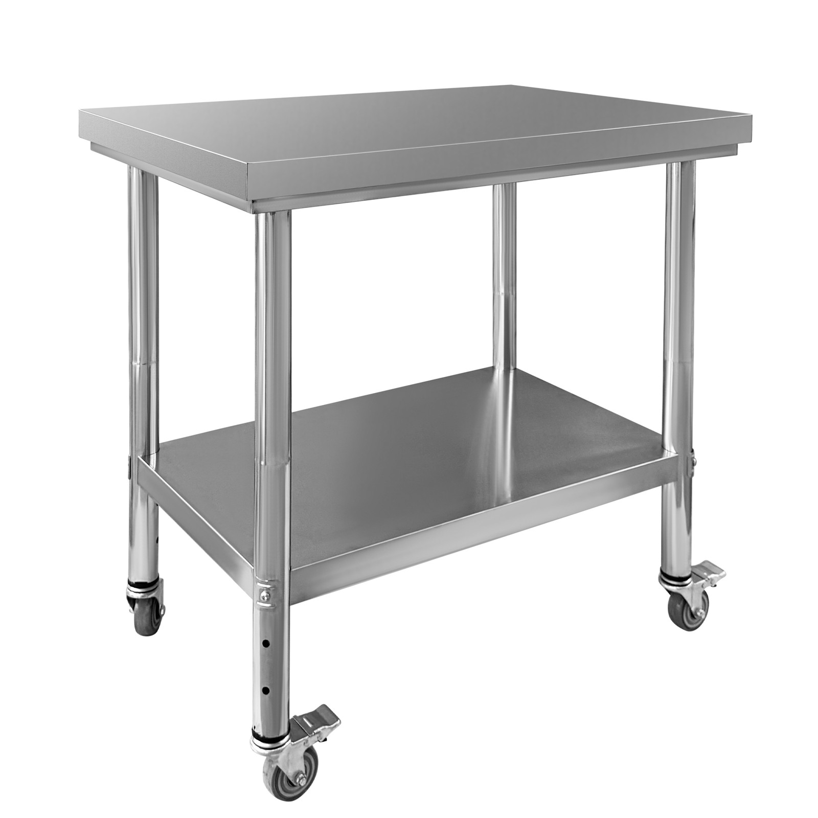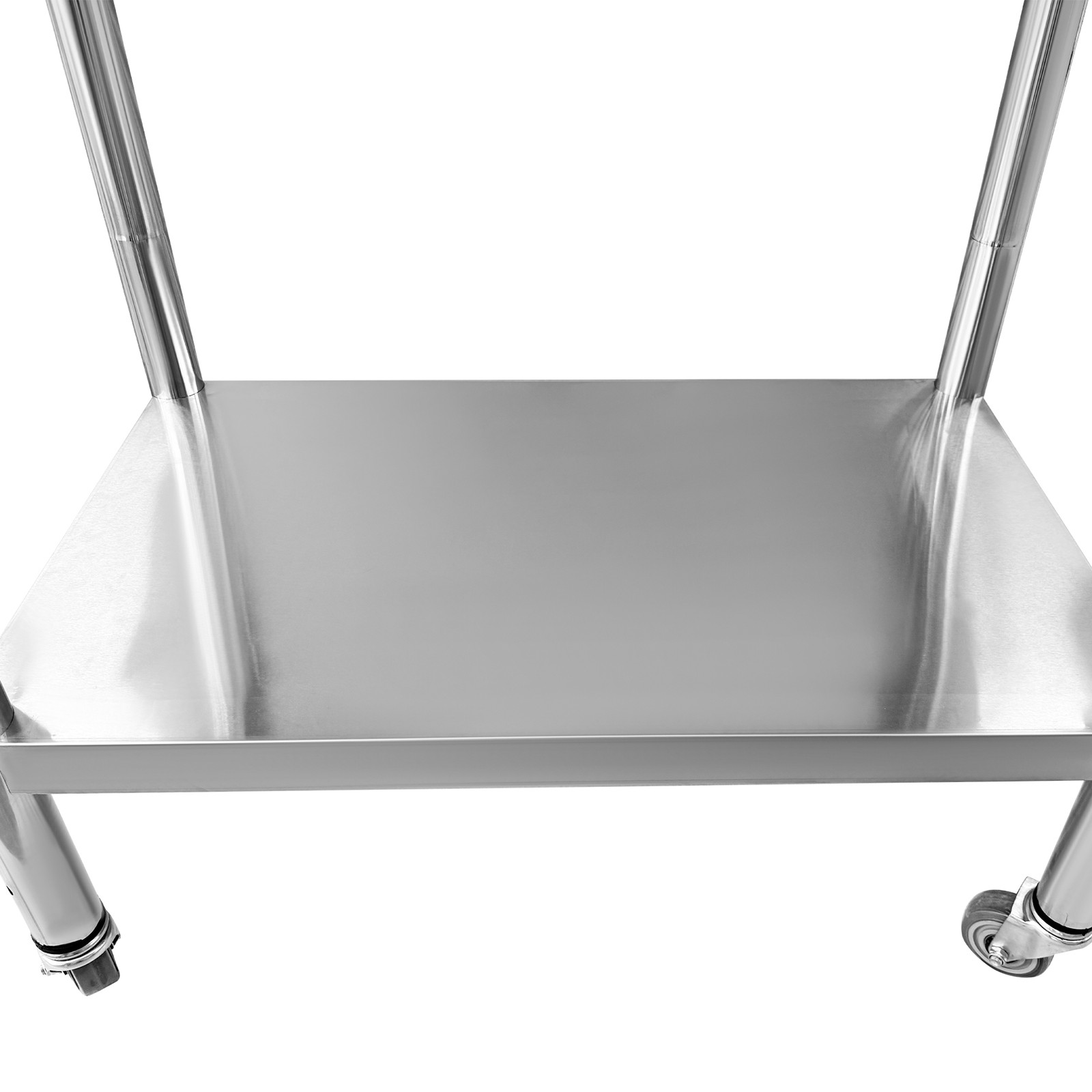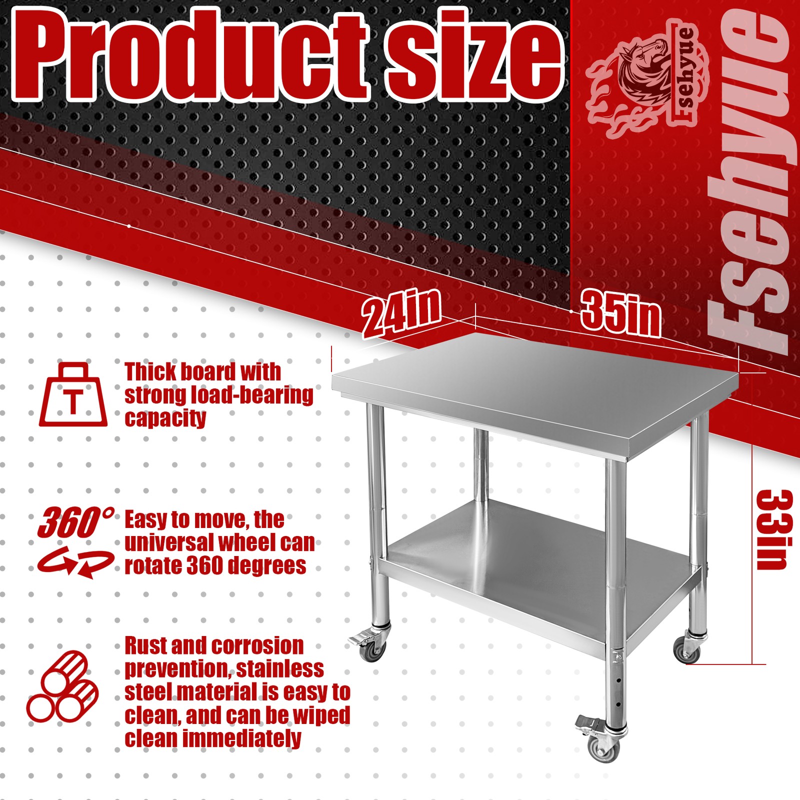ATTENTION: For your security, gloves are required during assembly! Rock Solid Material: Material: stainless steel; Tube Diameter: 1.9 in; Upper layer thickness: 2.2 in; Lower layer thickness: 1.6 in. Our kitchen prep table is constructed of stainless steel, with surface drawing treatment, offering excellent corrosion resistance, durability, ease of cleaning. In addition, this work table provides you with a large workspace, so you don't have to overcrowd your countertops.