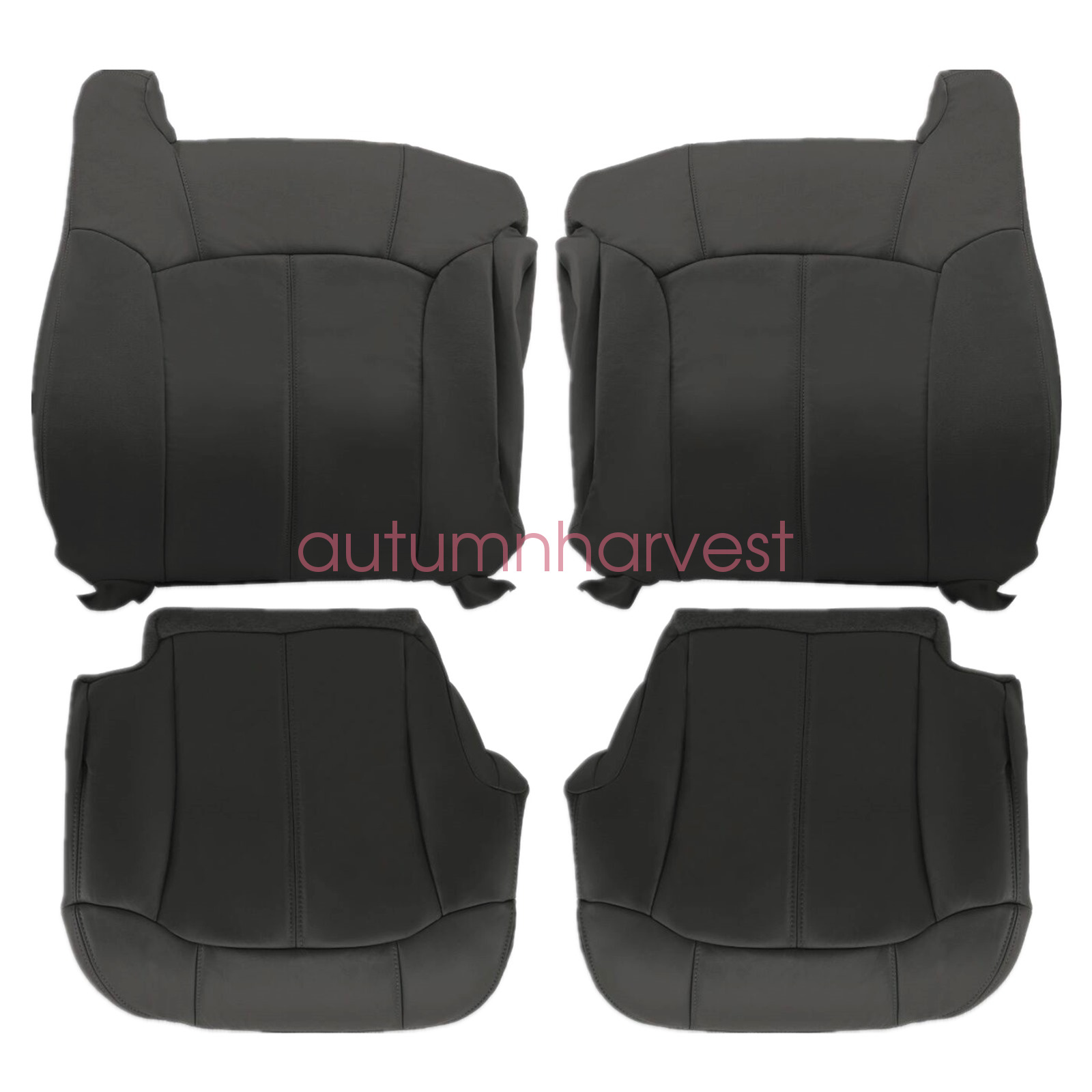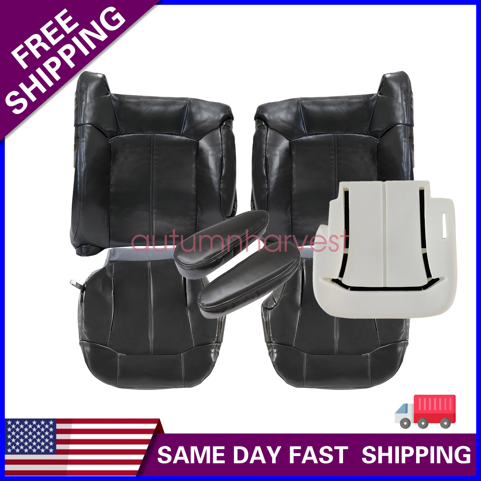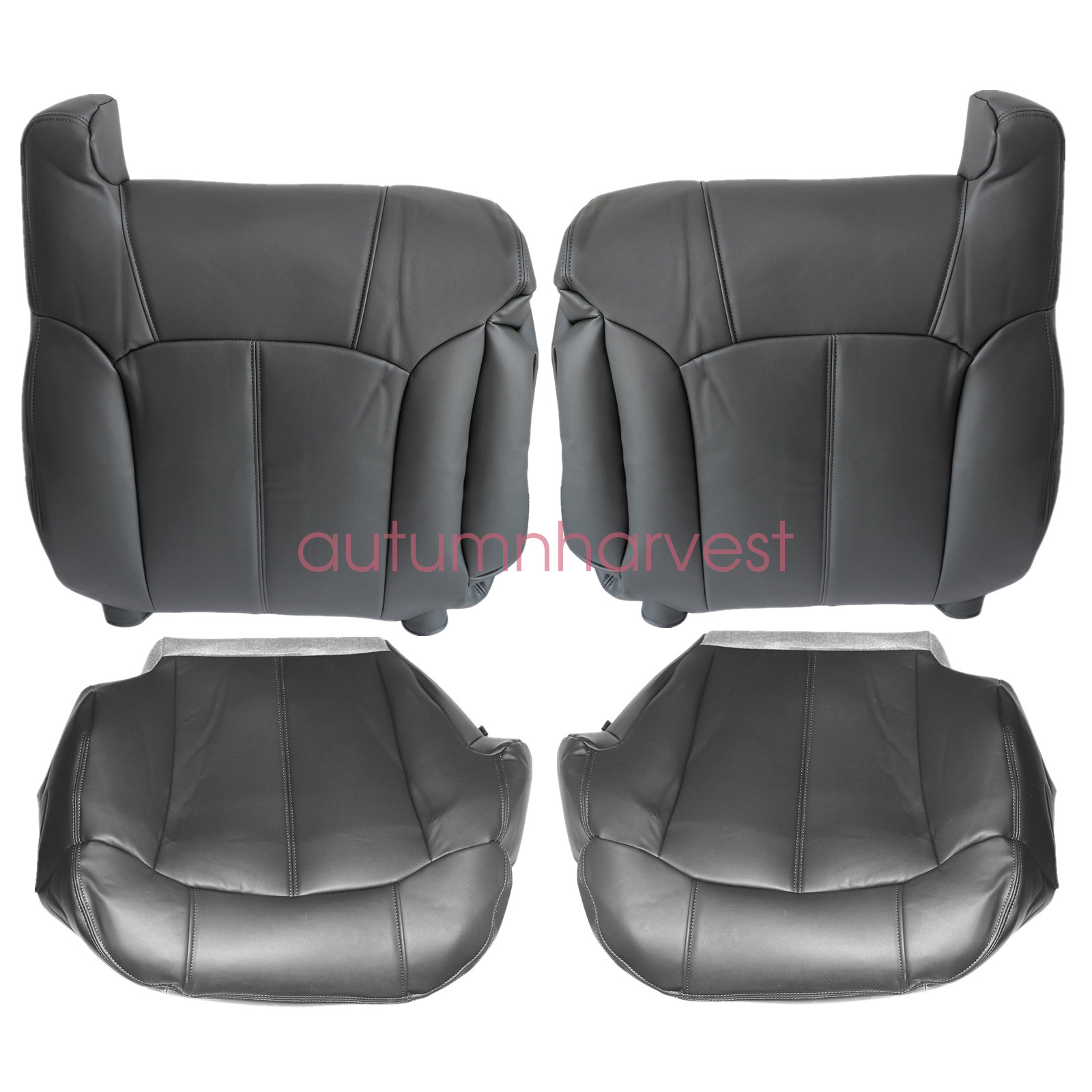 Replacement For 1999-2002 Chevy Silverado GMC Sierra 1500 2500 3500 HD Front Driver & Passenger Replacement Leather Seat Cover & Driver Foam Cushion & Armrest Cover Dark Gray 122