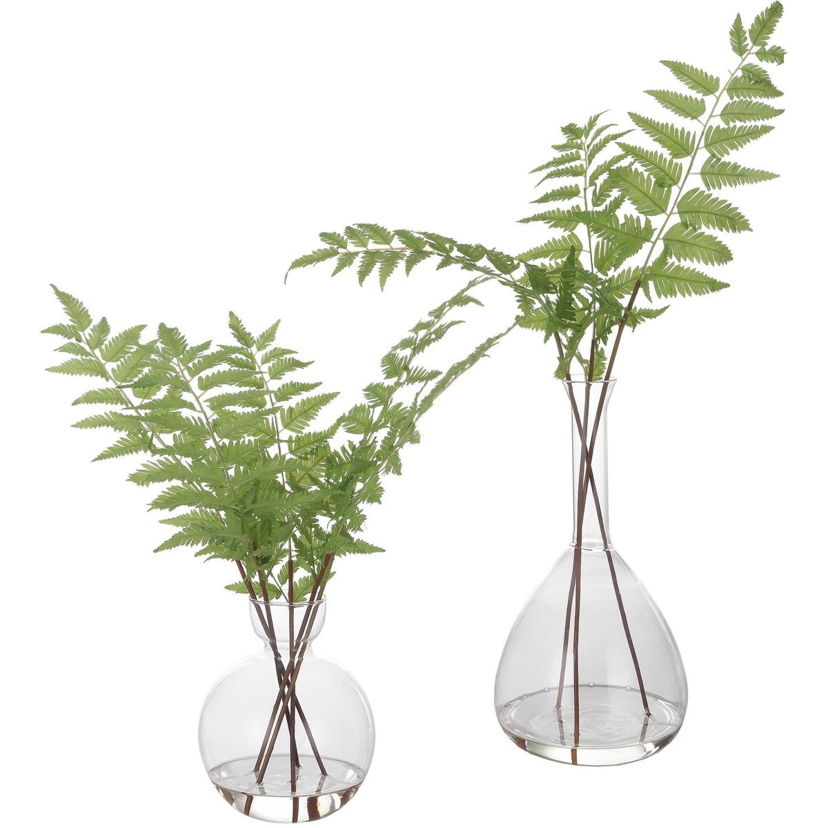 Native To Forests And Woodland Areas, These Fern Stems Add A Touch Of Whimsical Charm To Any Space. Each Bunch Is Nestled In A Shaped Glass Vase With Faux Water. S- 17", L- 21"