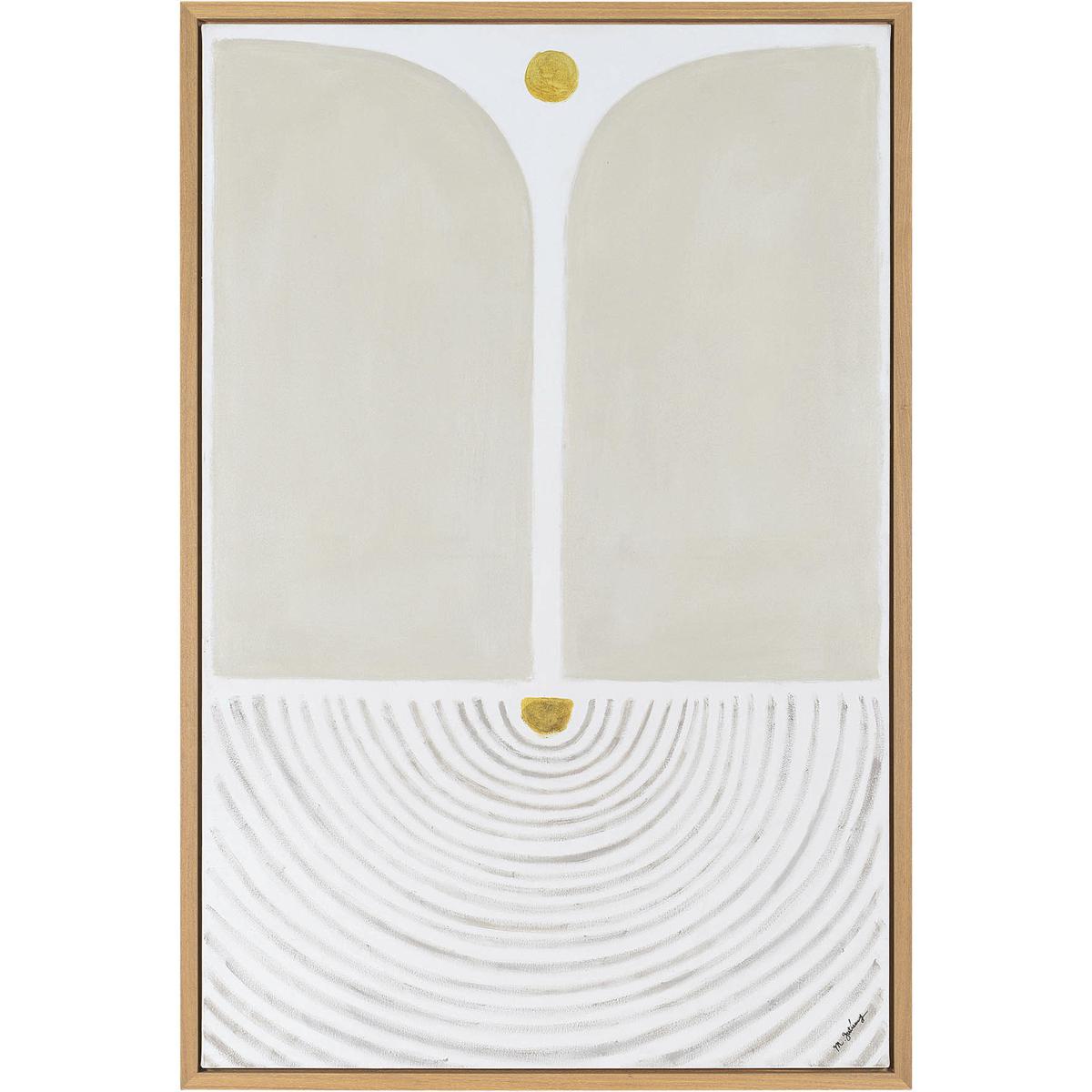 Giclee On Canvas, This Abstract Piece Features Splashes Of Orange, Red, And Blue Highlighted By A Cream Background. A Solid Wood Gallery Frame With Gold Finish Completes The Artwork. May Be Hung Horizontal Or Vertical. Each Canvas Is Proudly Handcrafted And Printed In The USA. Artwork By Lisa Ridgers.