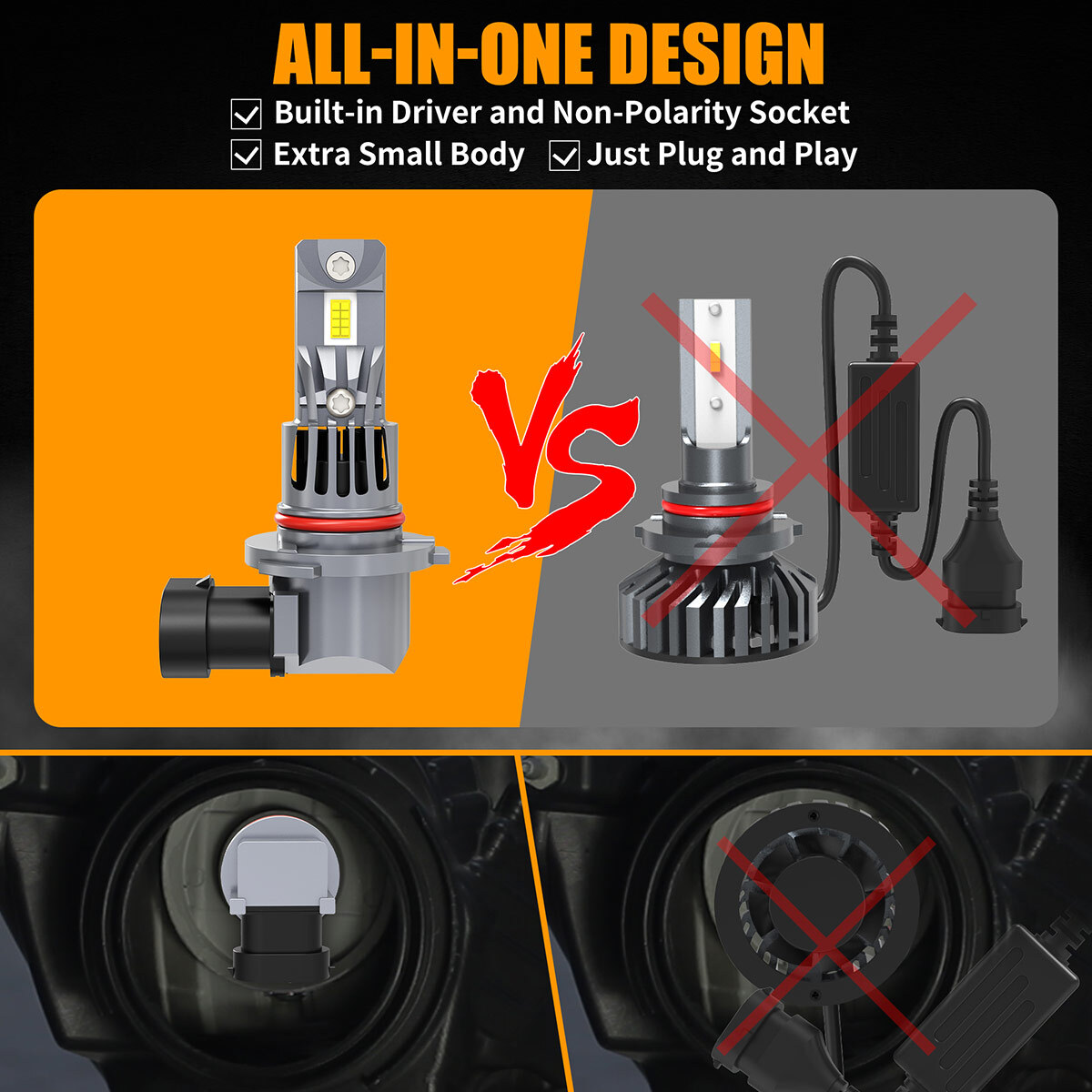 The smallest size of all AUIMSOCO different series LED bulbs to fit over 99% vehicles without modifying the factory dust cap. The bulbs are also designed as small as it can to fit the assembly with bulb hole off the center. A51 Series is one of the smallest LED lights on the market, with built-in driver which can perfectly fit most vehicles without installation issues.