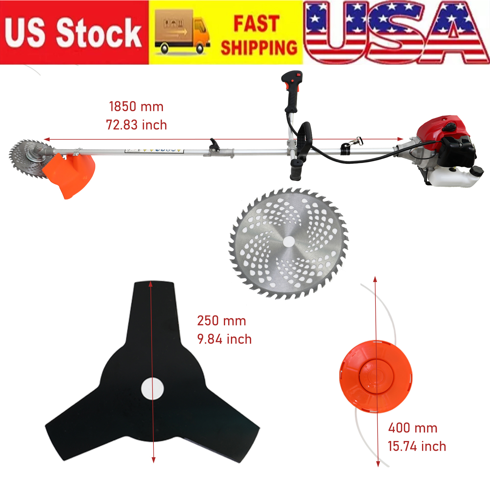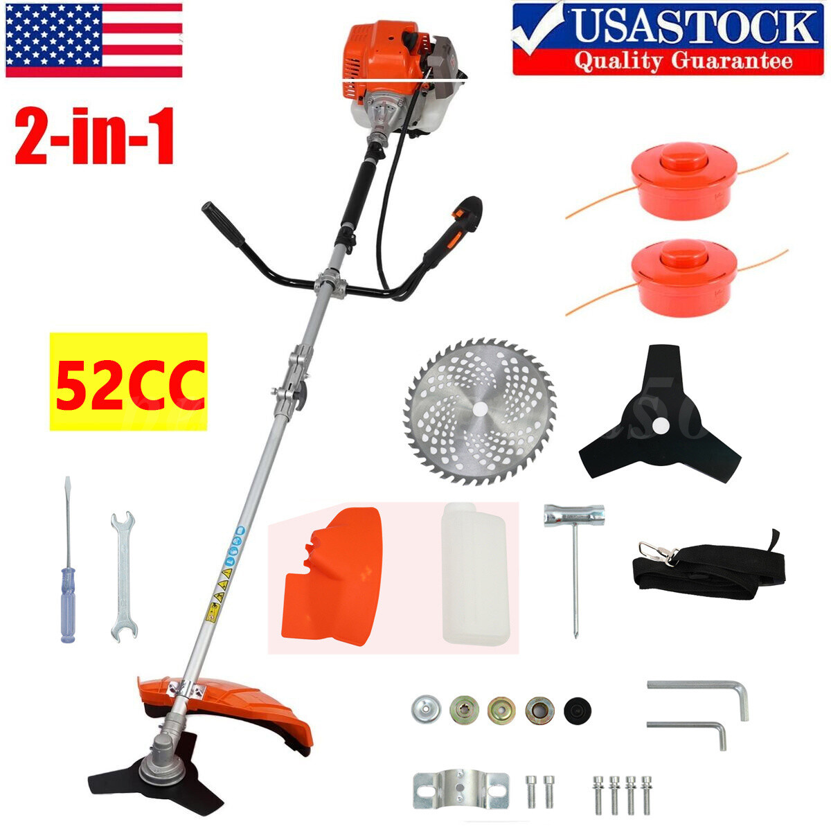 52cc 2-Cycle Gas Grass String Trimmer Straight Shaft Gas Weed Eater Lawn Mower