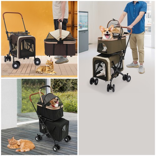 A New Travel Experience for Pets: This pet stroller features a unique double-layer structure, with both the upper and lower tiers comfortably accommodating your beloved pets. With a maximum weight capacity of 77 pounds, whether you have two dogs or multiple cats, this stroller can handle it with ease. Not only does it save space, but it also makes managing your pets more convenient.