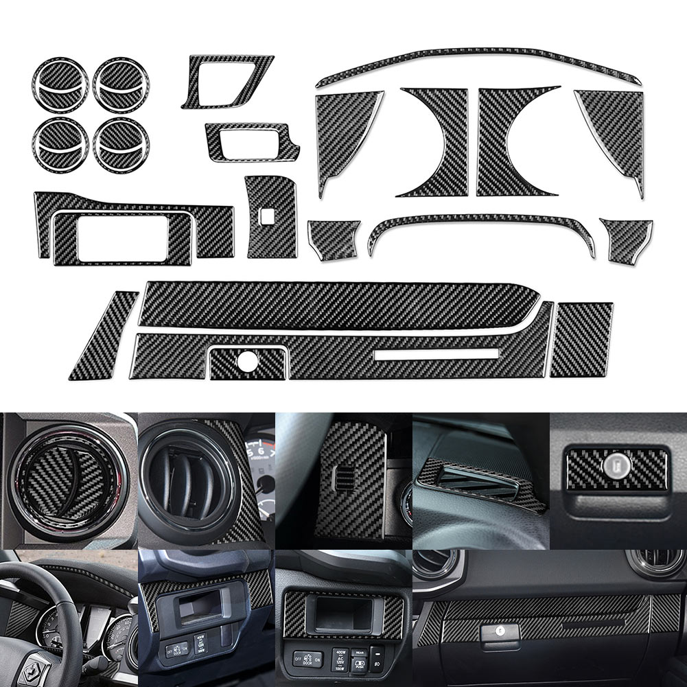 30Pcs Interior Dashboard Decoration Kit Cover Trim For Toyota Tacoma 2016-2022 Features: 1. Perfect match for your car. 2. Easy installation, with the adhesive tape on the back. 3. Exquisite workmanship, take you different luxury feelings. 4. It can cover existing scratches and prevent from scratch and abrasion. 5. Made of high-quality material. Durable, no fade, high temperature resistance and waterproof, easy to clean. Specification: Condition: 100% Brand New Material: Carbon Fiber+Epoxy Coating(Soft) Color: Black Fitment Type: Overwrite Paste Placement on Vehicle: Front Fitment: Fit For Toyota Tacoma 2016-2022 This item is only suitable for Left-Hand Drive cars. Please kindly check our item description, photos and sizes, make sure this item fit for your car before place an order. Packing Included: 1 Set/30 Pcs Interior Decoration Cover Trim Installation Steps: 1. Clean the area and eliminate any impurities before mounting this item. 2. Align this item with target-position accordingly and peel off the tape backing. 3. Press the item evenly after proper alignment. 4. Avoid any situation that might wet this item within 24 hours after installation. Notes: 1. All dimensions are measured by hand, there may be small deviations. 2. No installation instruction included, professional installation is highly recommended. 3. Due to technology, the carbon fiber texture may be slightly deformation and difference. 4. The real color of the item may be slightly different from the pictures shown on website caused by many factors such as brightness of your monitor and light brightness.