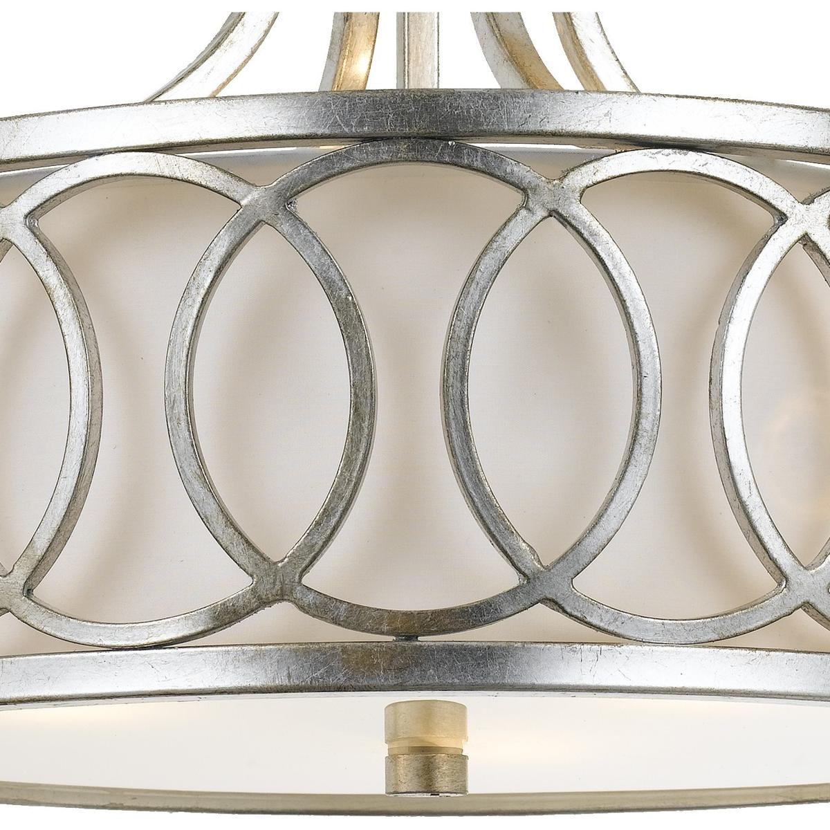 The handsome Graham collection designed by Libby Langdon features beautiful metal circular framework. This fixture is just as stunning when you see it from below as it is when you see it head-on. The chic interlocking circle pattern allows the intricate metal work to shine. The light and airy feeling Graham evokes can accompany any design and be used in any room.