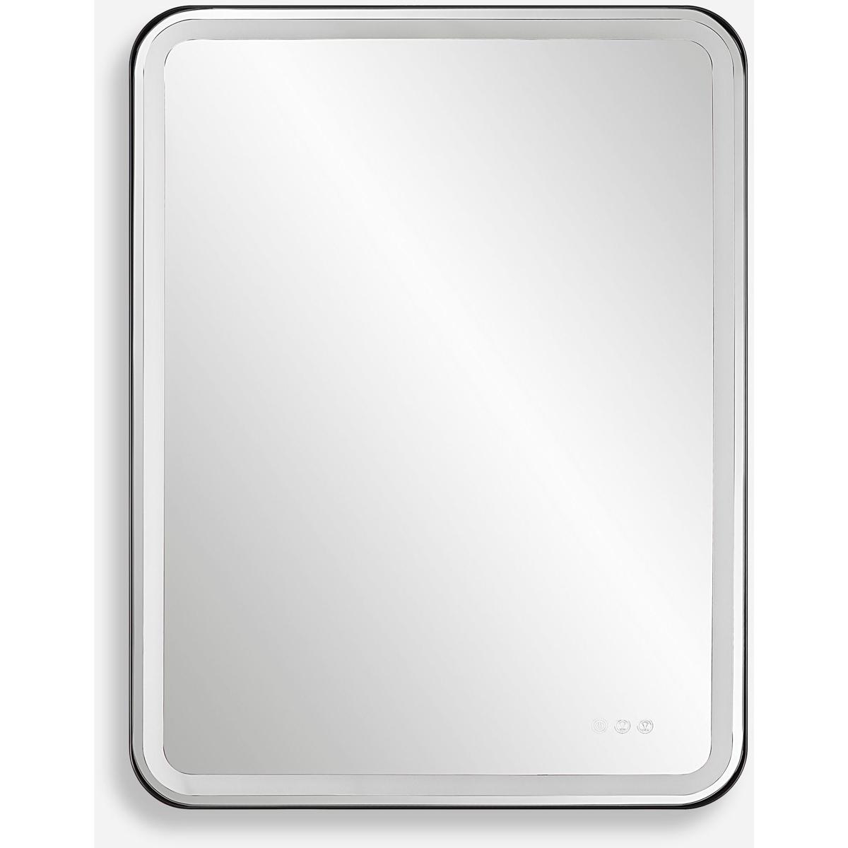 Versatile In Design, This Mirror Has Integrated LED Lighting That Illuminates Through The Frosted Strip In The Polished Edged Mirror. The Metal Frame Is Finished In A Satin Black And Is Off Set From The Wall To Allow Ambient Lighting From The Back. Easy To Use Touch Buttons Are Featured On The Bottom Right Of The Mirror With An On Off Function, Touch And Hold Kelvin Control From 2700k To 4000k, And Touch And Hold Brightness Control. LED Lights Rated At 40,000 Hours. Ships With Plug, But Can Be Hardwired Professionally. Touch Screen Icons Continue To Illuminate When Powered Off For Easy Navigation In Dark Settings.