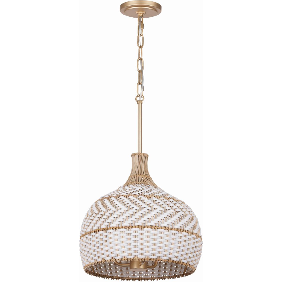 The Zanzibar Collection is an embodiment of laid-back luxe and thoughtful simplicity. By marrying the natural textures of natural rattan with white and/or black lanyard, the fixture introduces a striking color palette with a soft gold finish that instantly brings comfort and style to a living space Handcrafted with precision, the intricate weave introduces texture and depth to your décor. Whether suspended over a breakfast nook or in pairs above a kitchen island, the Zanzibar exudes an earthy, elegant charm that brings an artisanal touch to your decor.